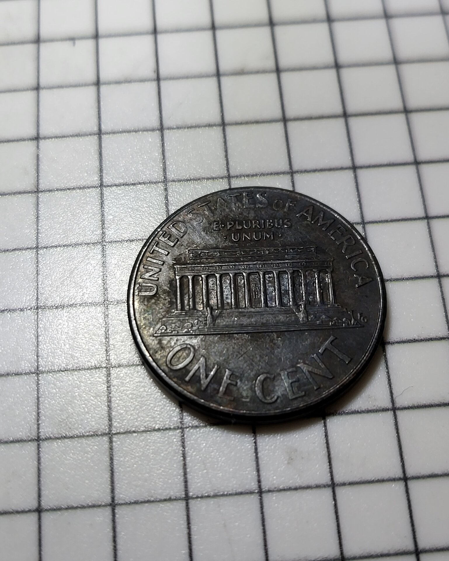 Most likely a cent that some coated with something. Look at the spots on Lincoln's head and the letters UST and you can see it is worn through to the original surface of copper plating. JMHO.