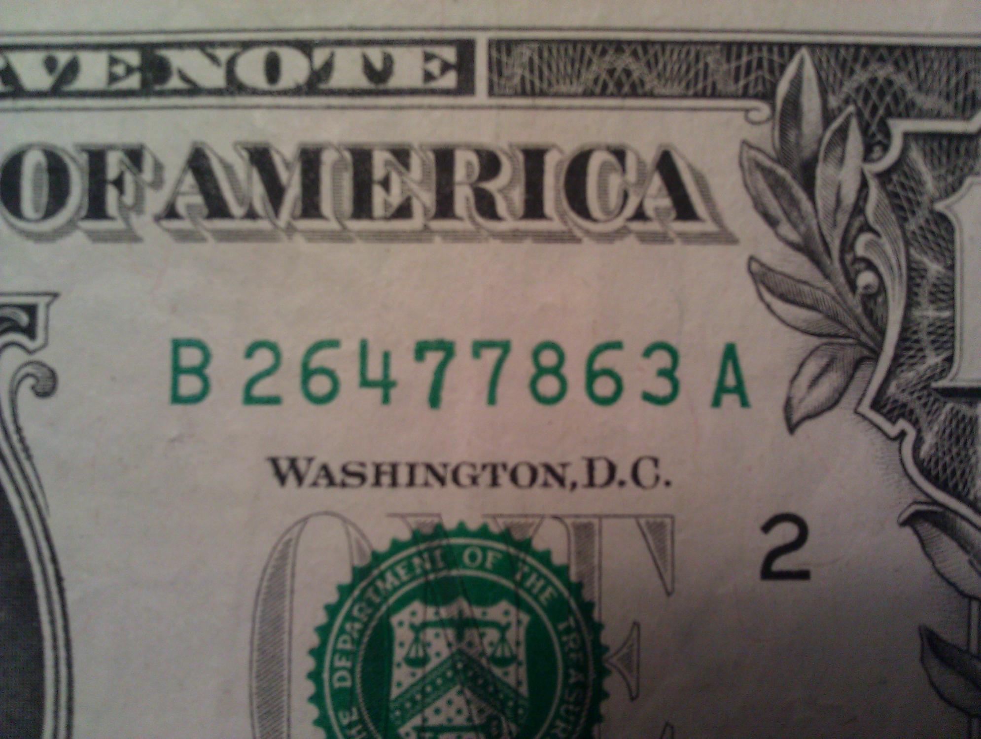 I came across this $1 note the other day. As you can see, the 7's in the serial number are different sizes. I thought at first the 7 was just shifted. After closer examination, I found that they are indeed different sizes. I also thought perhaps one digit got a bit more ink than the rest, or was smeared when printed. But then why would both sets of serial numbers on this bill have the same effect? I'm a bit puzzled. I actually measured the pixels in the photo, and the larger 7 turns out to be 6% bigger than the one next to it. Any thoughts as to how this happened?
