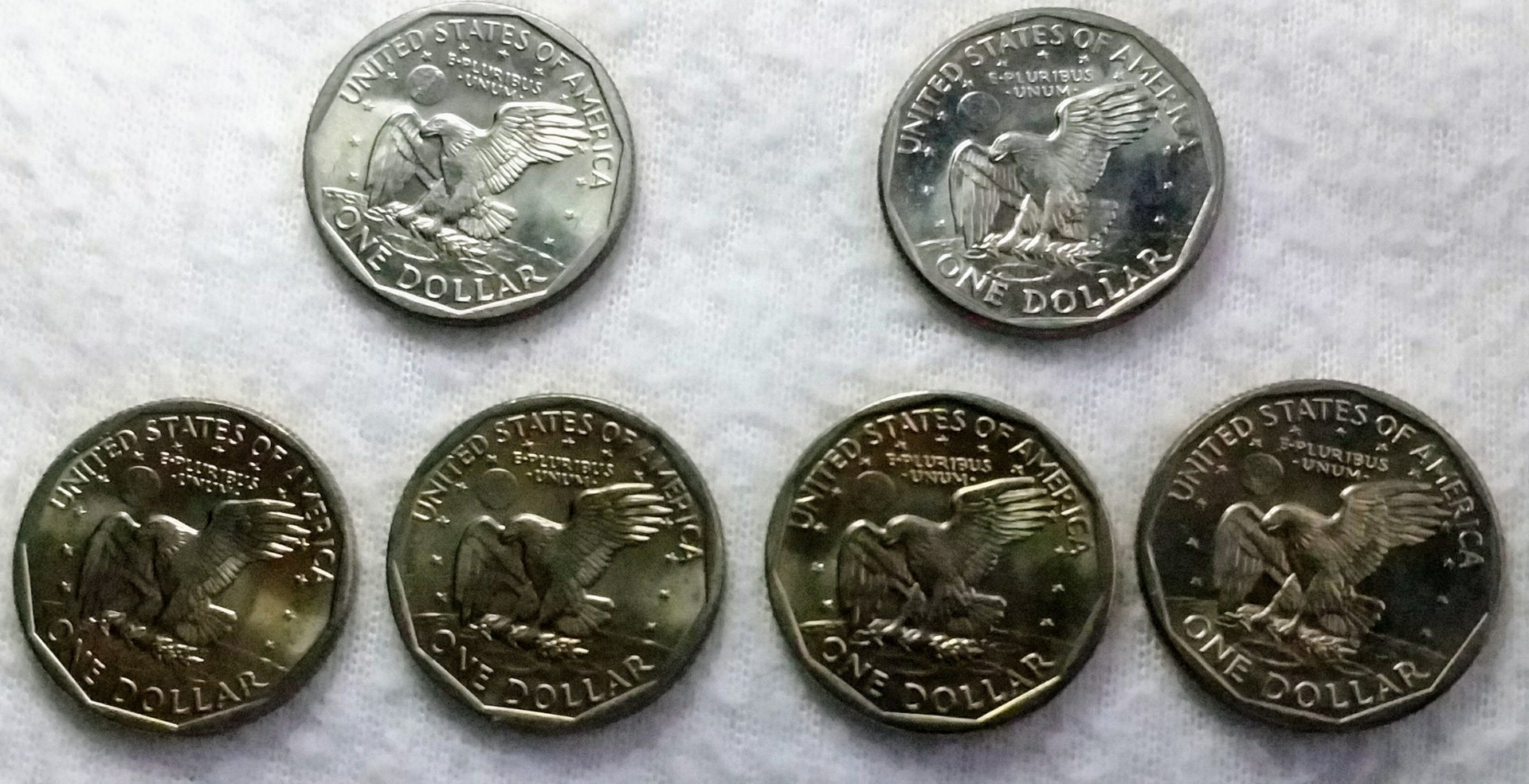 Good afternoon! Something I would like to run by you fellows. I have several SBA dollar coins which are in good condition. I've posted this subject on coin chat forum as well. Anyway, I've noticed that out of all those coins, 4 stands out mainly because of their color. 2 from '79 and 2 from '80 , both with a P and D mint mark. Just curious on what could have caused the discoloration. Is it environmental or during mintage? Hoping to learn from all of you. Thank you