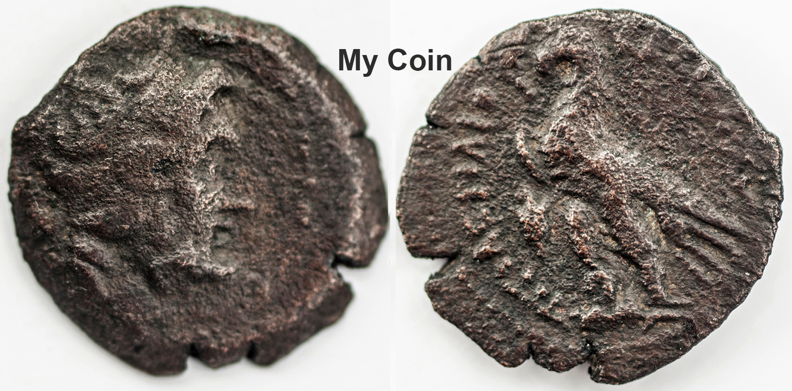Hi All, Some time back I noticed a Ptolemy bronze coin for sale and fortunately was able to purchase it. It has a diameter of between 16.31 and 17.13 mm with a weight of 2.80 grams and is in rather rough condition.. What directed me to the coin was its obverse – to me it appeared to show not the god Zeus but a Ptolemaic king. One coin does not a series make so I checked numerous illustrations of coins for something similar and finally found an astonishingly similar match with coin #20 on Plate 6 of “The lotus of Aphrodite on Ptolemaic bronzes” by Dr Catharine Lorber. That coin is 19.0 mm in diameter with a weight of 4.34 grams and is in the ANS collection (1944.100.78967, Philipsen coll.). This second coin appears to have been struck from the same dies as my coin and I contacted Dr Lorber and sent her photographs and details of my coin. Dr Catherine Lorber was extremely helpful and is of the opinion that the obverse shows a Ptolemaic king in the guise of Zeus-Ammon (that is, she reads the ram's horn on the king’s head as representing an assimilation of Zeus-Ammon to a Ptolemaic king) and that he has an unusual type of beard that leaves the chin bare but covers the back part of the jaw. This type of beard is not normal for Zeus or Zeus-Ammon but appears on late portraits of Ptolemaic kings. She mentions that it is unexpected to find this kind of cryptic portrait on a bronze coin and wonders what might have motivated the production of a bronze issue with such special iconography.(Dr Lorber is, to me, the current "Great" in the field of Ptolemaic numismatics). The actual Ptolemy and the period of the coin are still in question. The lack of dimples would normally point to it being after 110BC but ptolemybronze.com shows and mentions a number of bronze coins dating to about 137BC which also have no dimple (Sv1624, Sv1628, etc). Regarding the unusual eagle – I have seen a coin of Ptolemy VIII with a somewhat similar tail and, regarding the king’s head with the “under the chin beard”, I found an illustration of a statue of Ptolemy IX with an under the chin beard – then I found one of Ptolemy X with a similar beard – then I found a statue of Ptolemy IX that was thought to be an altered statue of Ptolemy X with the same beard – then I gave up. Attached are photos of my coin and of that in the ANS Collection (Courtesy of the American Numismatic Society). My coin, and its brother from the ANS Collection, appear to be a new series of a Ptolemaic king yet to be determined. At the present time they appear to have a population of two coins in total. Hopefully more examples will be found, one of which might be a dateable example, and so give us an idea of just who this king was. Otherwise he will remain just one of the hundreds of mysteries in the Ptolemaic bronzes. Perhaps the members of Coin Talk know of other examples. Comments would be appreciated. All the best, Col