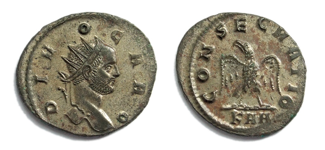 DIVI CARO PERS is the hardest DIVO type to find for Carus. Philip I mentions PAX FVNDATA CVM PERSIS, also using the word "Persia" which is appropriate (and more appropriate than "PARTHICO") because the Parthians had been overthrown by the Sasanians, who were "Persians," in 226 (long before Philip in 244-249 and Carus in 282-283). This example is 22-21 mm and 4.34 grams, with 12:00 die axis. It is Sear 3.12396, RIC 48.