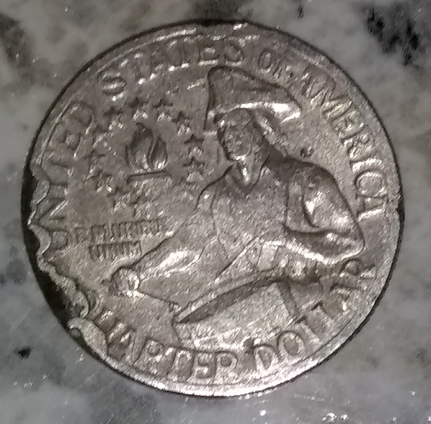 Badly damaged Quarter. The good news is that it's not worthless. It's worth 25 cents. You can turn this in to a bank and get 25 cents in return Or use it to buy anything at any store that accepts US currency. You may want to do research on US Coin errors and what is an error instead of just damage. Most coins you will find are damaged and worn; probably 99% of them or MORE.