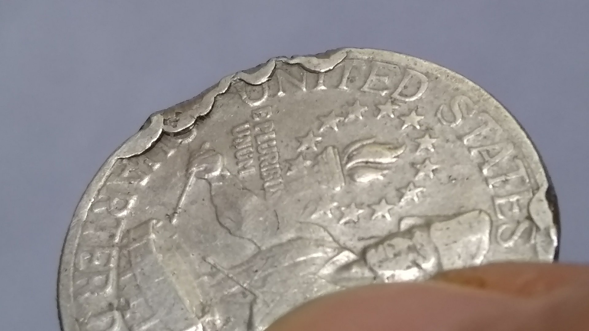 Welcome to the forum, Timexss. Stick around and you'll learn much. Please understand that many tens of billions of coins have been minted in our lifetimes, and with this comes near infinite ways in which they can become damaged. If you consider this and compare it to the relatively few ways genuine errors can be produced, it only goes to reason that when we encounter a coin that looks different from the expected, chances are great that it's simply damaged. Unfortunately, and as the others have said and/or alluded, this is the case with yours. Sorry, but no jackpots this time.