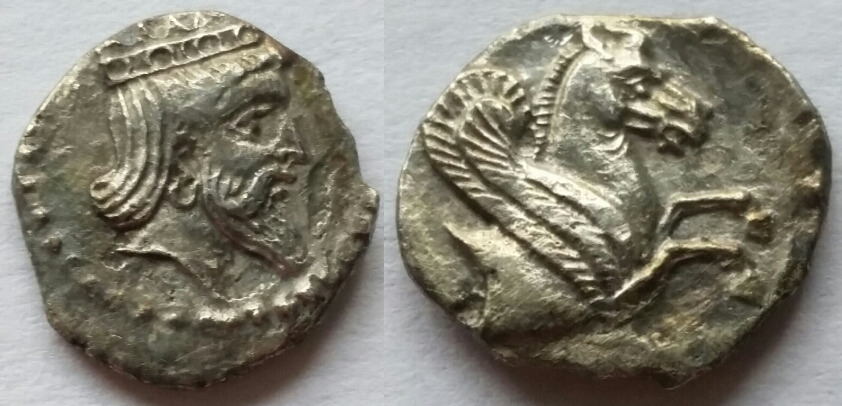 There are plenty of interesting small coins. My favorite is a girl tossing knuckle bones. Cilicia, TARSOS (389-375 a.C.) AR Obol Obv - Female kneeling left, tossing astralagoi. Rev - Male head right. 0.63 gr 9.4 mm