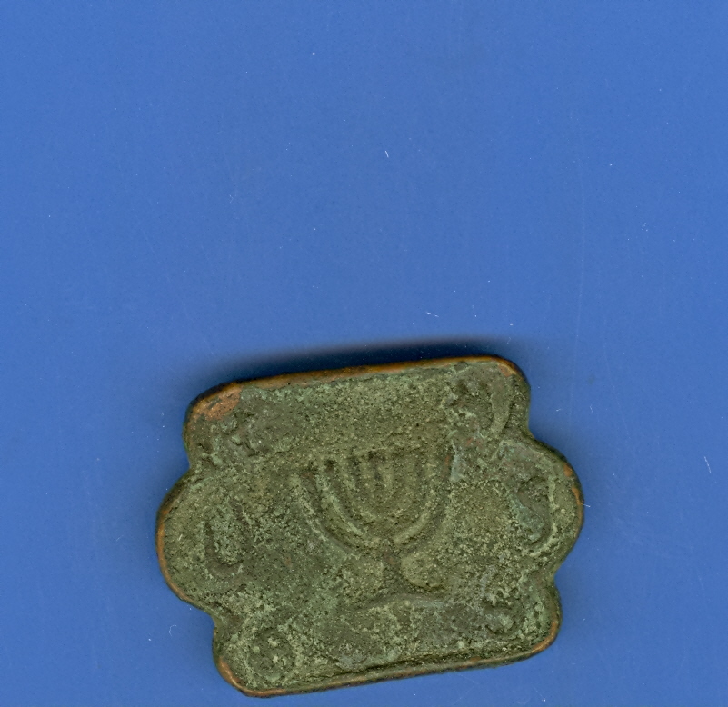 Might be some kind of modern adornment. It looks exactly like the Menorah and the other side looks like a variation of the Lion Of Judeah. The symbols around got absolutely no sense (for me), doesn't look like Aramaic/Hebrew.