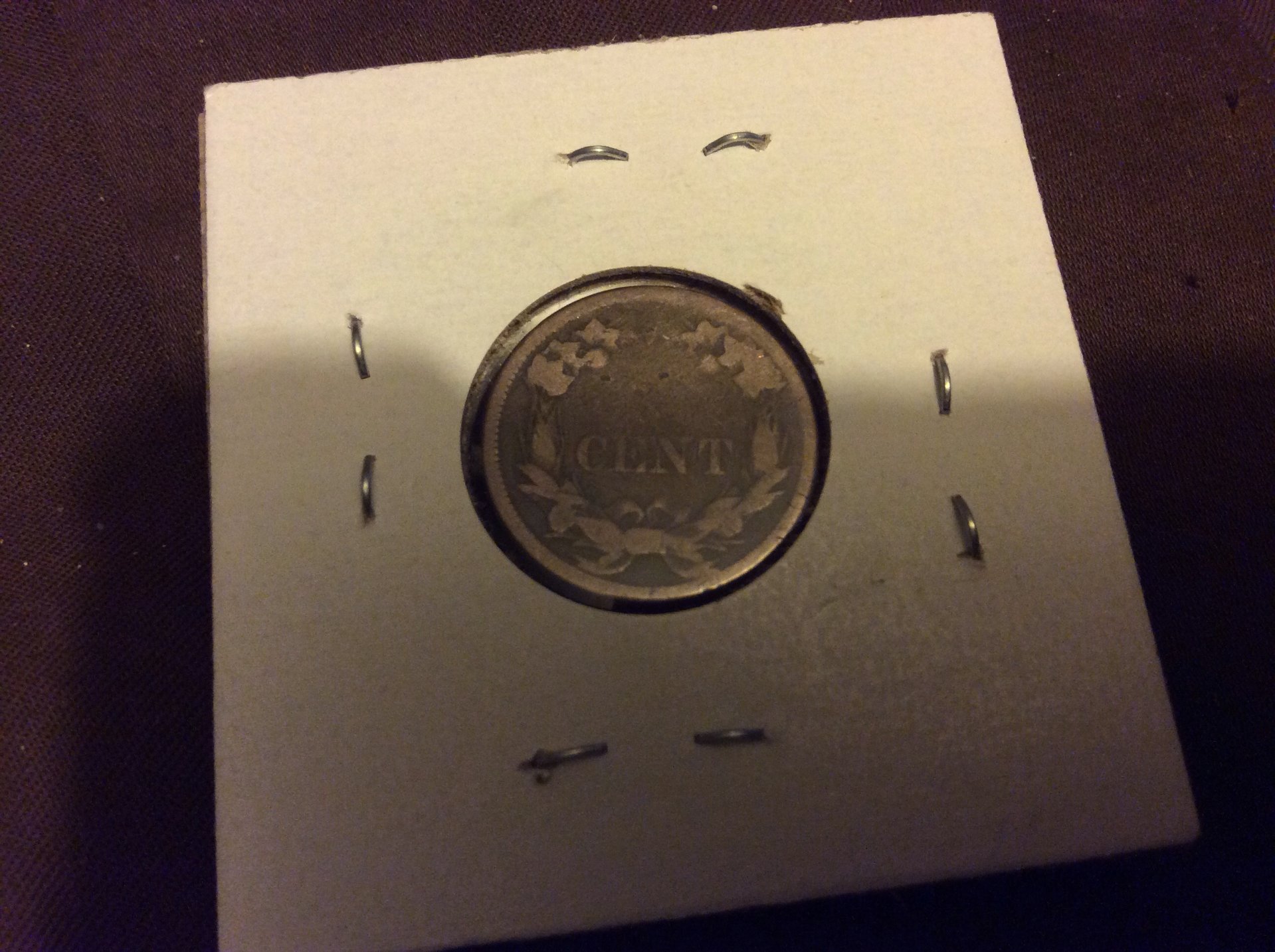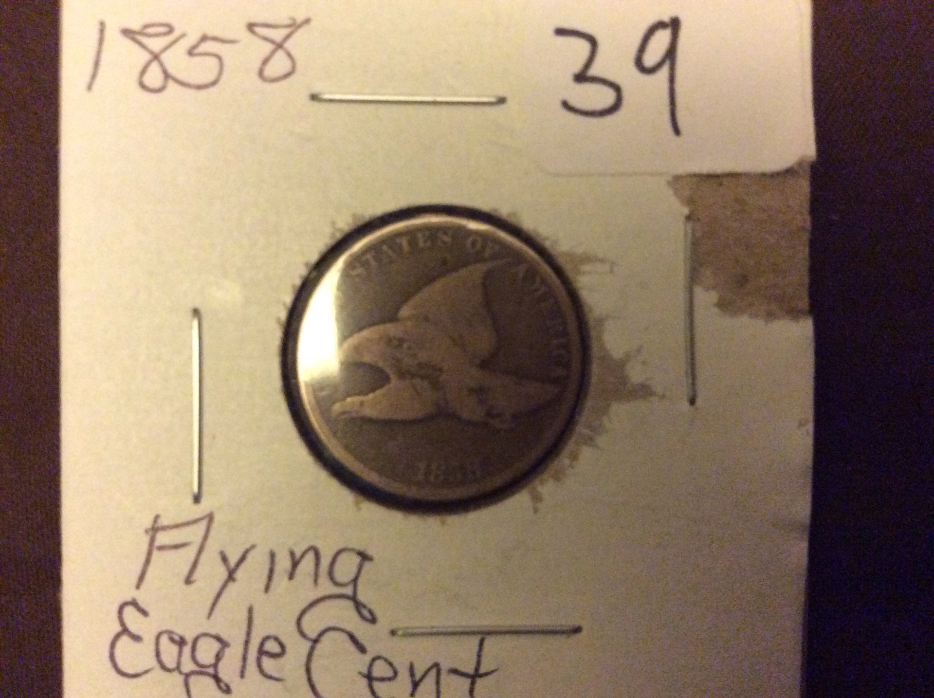 image.jpg I recently bought a 1858 flying eagle cent. It was very worn but you could clearly see the date eagle ect on one side but on the other side it shows the word cent and has the surrounding design even though it is worn. The puzzling part is that the "ONE" is differently missing and it doesn't look to be worn off just a blank area.