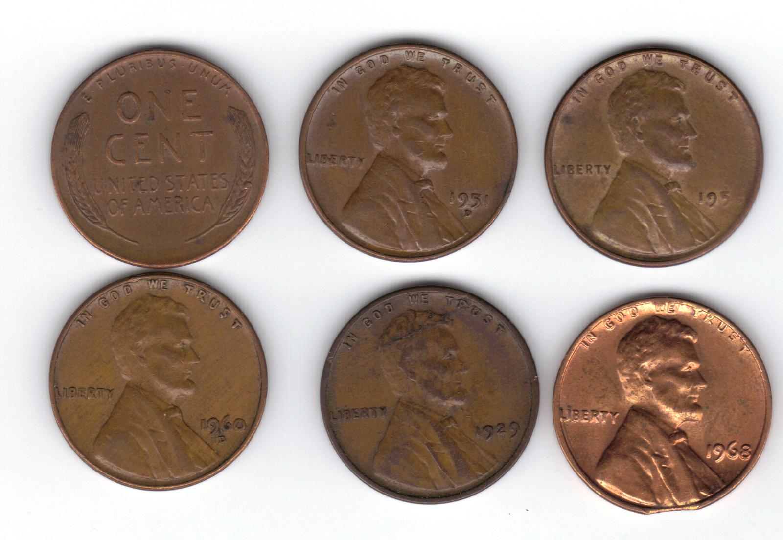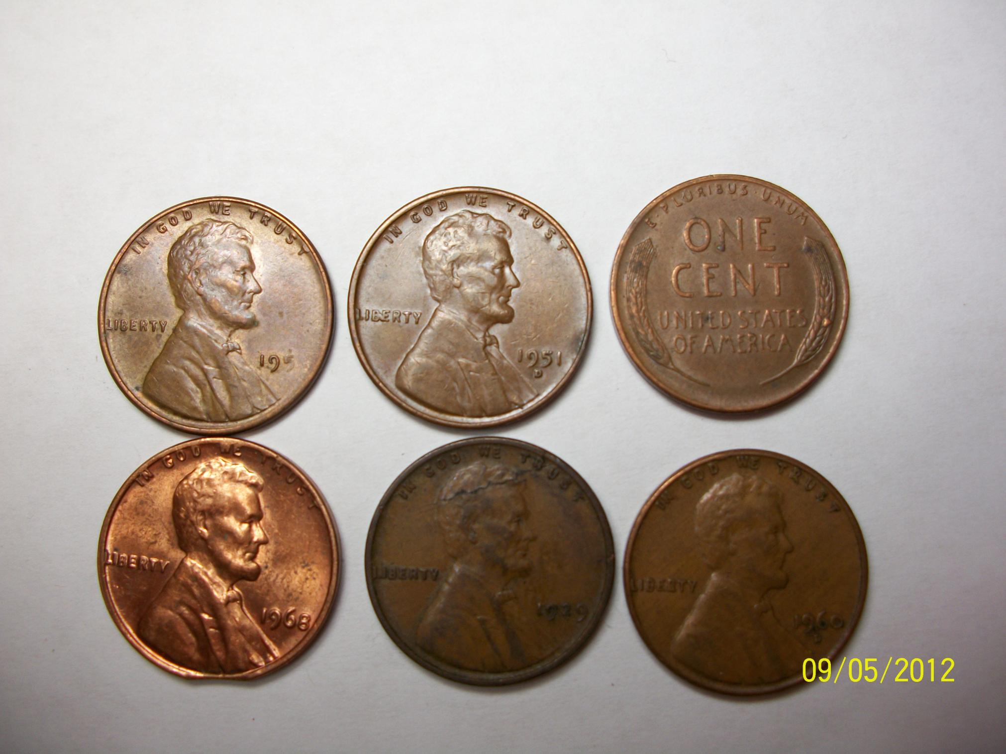 I know people collect these coins but does anyone on this sight who could give me some insight into the value of these errors and what makes one more valuable then the other. Obviously, I know the clip error will be more valuable the larger the clip but what about some of the others. For instance The lamination error across the head of Lincoln. Is it more desired then a lamination error across the date? Some of these have extra blob ( for the lack of a better term). One of them is in between the B and E making it look like it reads BIE. One of the wheat stocks has an extra blob on it. Which do you believe would be more sot after? Finally the one with the missing digit. Are they more desired if the 1 or the 9 is missing or does it not matter? Sorry if I over whelmed you with questions but I am trying to learn what types of errors people like and why? I have posted a scan and a picture of the coins. I did know which would make the errors easier to see?The first coin top right is missing a digit, coin2 is BIE,coin 3 has blob on wheat stock, coin4 is a clip,coin 5 is the lamination error and coin 6 is I believe a clogged die. The R is filled in. This is the order of the picutre the scan is reversed.Thanks Derek