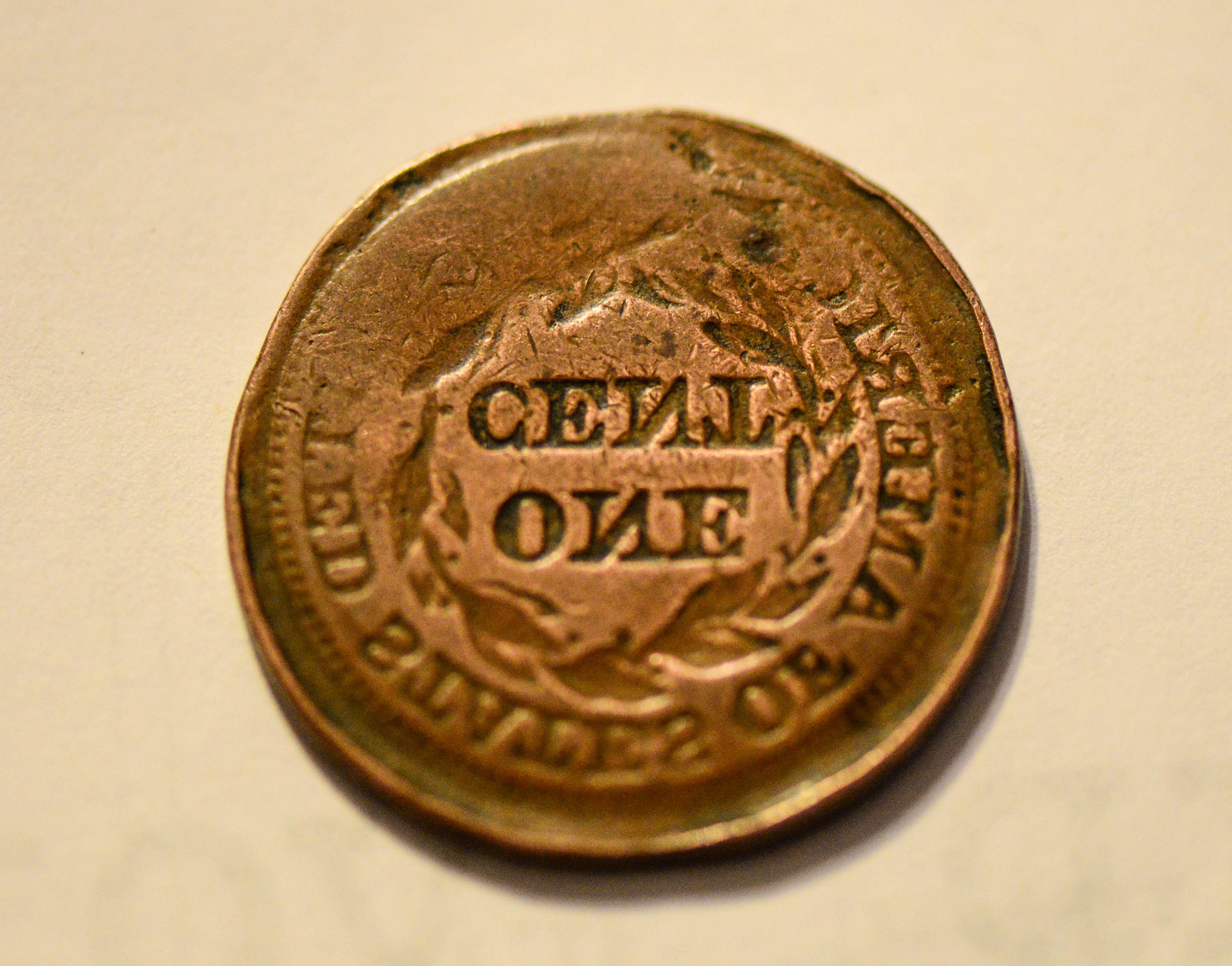 Good evening, About a year ago I purchased an estate collect and I'm still going through it. Today I was sorting through a lot of Large Cents and found an 1825 US Large Cent. The condition isn't bad at all, most of the details are good (see attached photos), but this one is special. Both sides are reversed (backwards). If you were just to take a fast look, you would think it was a regular Large Cent. The date on the front is backwards, and the profile is facing right instead of left, and the word 'liberty' is backward. On the reverse, everything is incused and the printing is again backwards. If you were to put it up to a mirror and look at both sides, it would be a standard 1825 Large Cent. I only found information about one side being brockaged, with the reverse stamp being the same at the front. This one is a complete Large Cent, except it is all backwards. The weight is 9 grams, but I weighed a couple other Large Cents and they are also 9 grams (my scale may be off). No size difference, everything looks normal (except the backwards part). Have you ever seen this??? Hope you can answer this for me. Thanks for your time, Robert