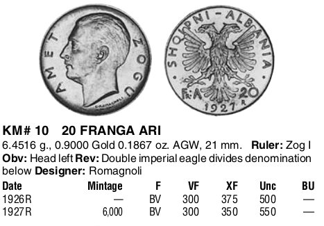 Does this coin exist??? 1926 Albania 20 Franga KM10, Zog left.