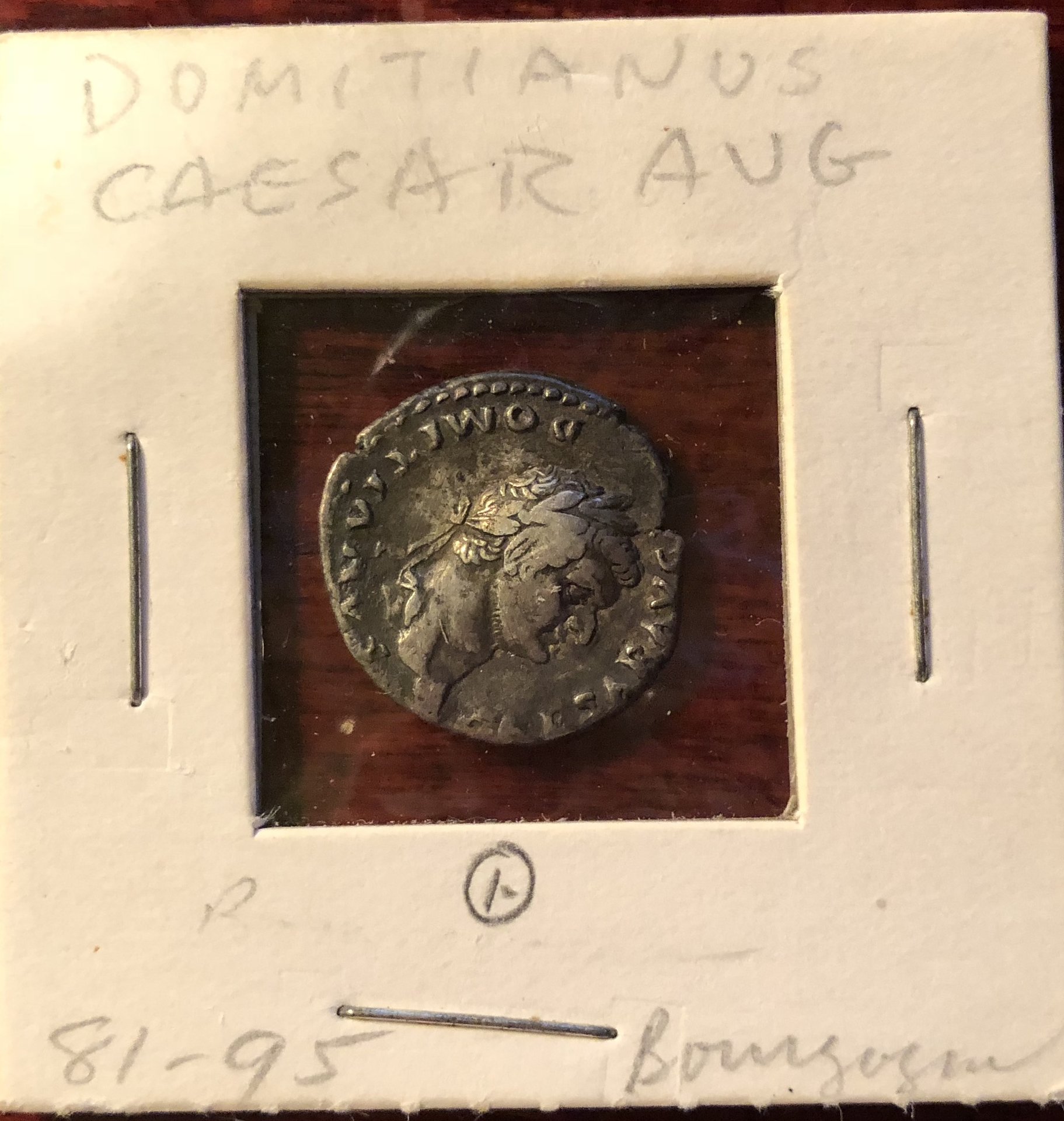 I'd sworn off denarii for a while, but this is another bargain that came in over the weekend. I took a gamble on a poor quality photo on this one, and I think it paid off. Interestingly, Pegasus almost looks like he has a horn here. Domitian as Caesar, denarius Obv: CAESAR AVG DOMITIANVS, laureate bust right Rev: COS IIII, Pegasus stepping right 18mm, minted at Rome in 76 AD, RIC 238 EDIT: I forgot to include this. Here's a shot of the flip it came in; can anyone decipher the writing on the bottom right, and what it might mean?