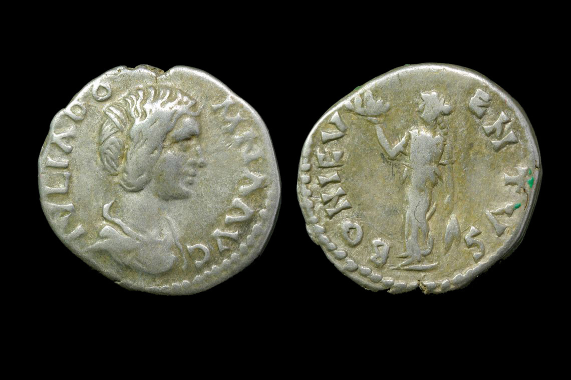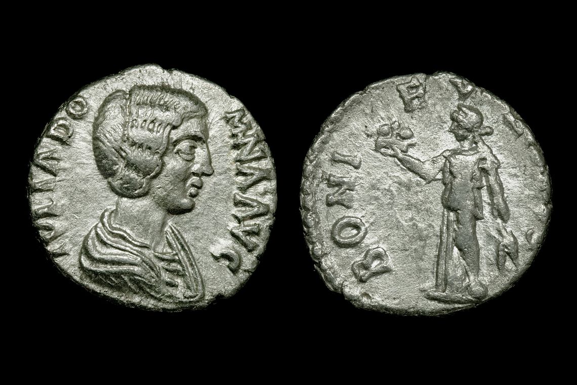 Obv: IVLIA DOMNA AVG, bare-headed and draped bust right