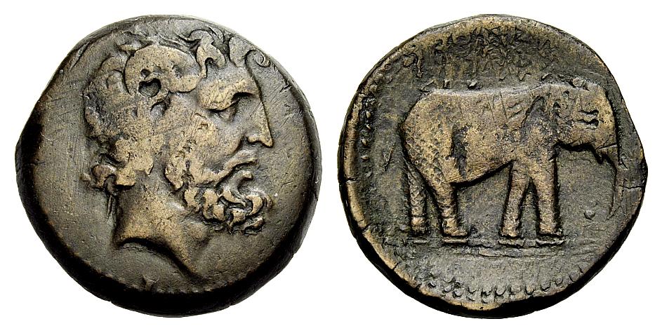Thanks, @zumbly. I would love to have an example of the Juba I elephant bronze like yours, to go with the Metellus Scipio. I looked on acsearch and it's clear that they're not inexpensive. This one went for almost $900 in a German auction a few years ago: Note the traces of cross-hatching on the elephant. It has traditionally been interpreted as armor, although I'm more persuaded by the argument that it's intended to depict the elephant's wrinkled skin.