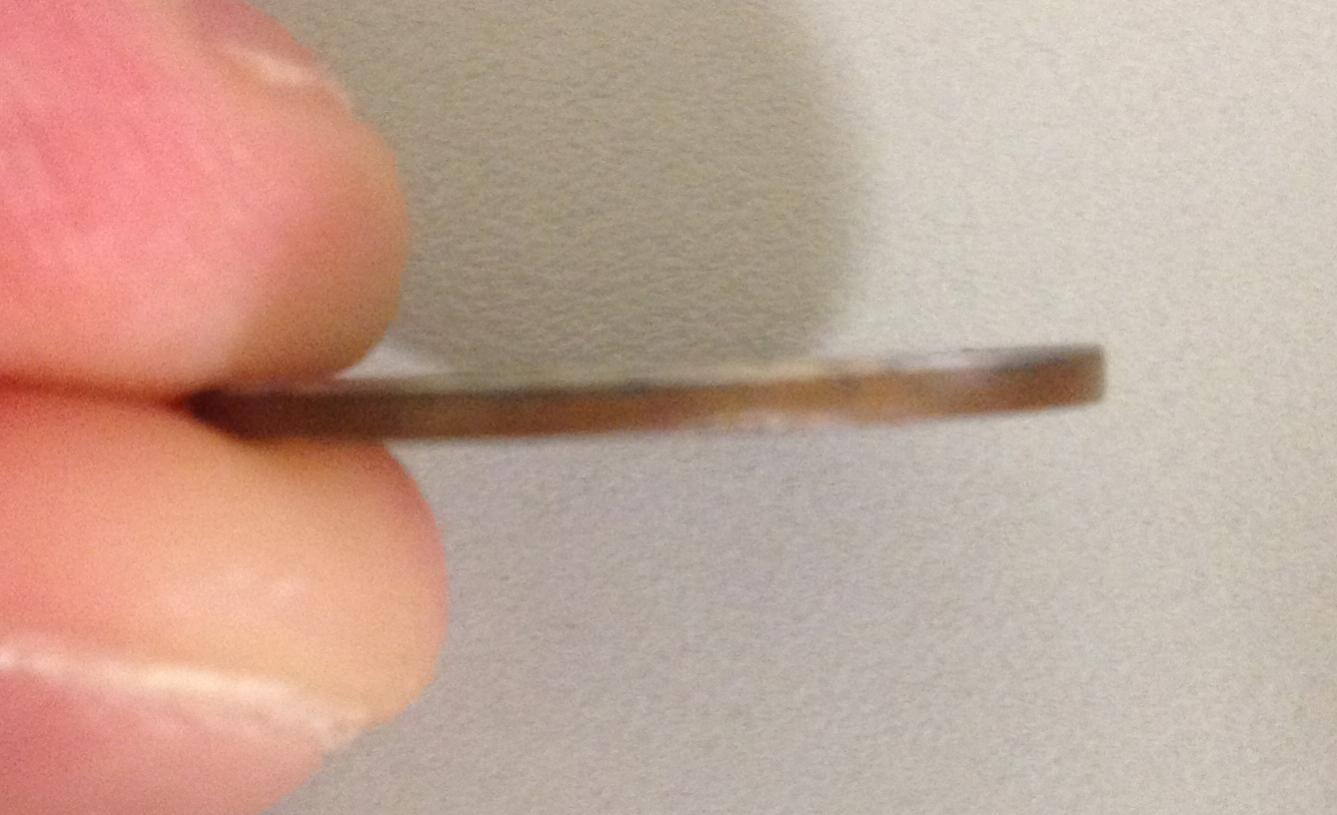 I was very suspicious of the bi–metal. Anyways, check out these images that show the side of the coin. We are talking incredibly thin cuts. I do not know how someone could do it. A shell makes sense, in theory, but I cannot see any obvious imperfections in this con job. Do you think it has any value as a well–done magicians coin? Thanks.