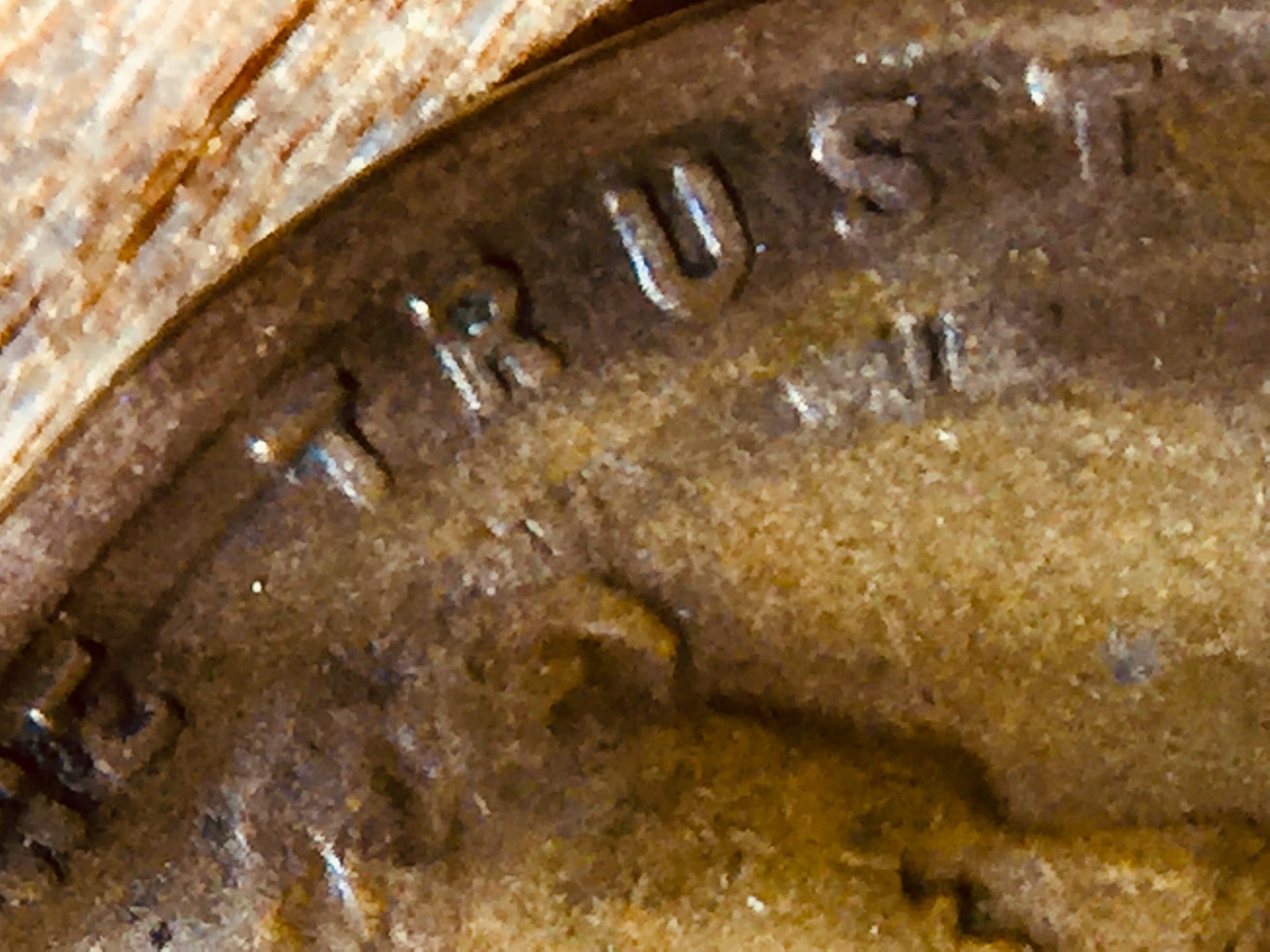 I found this today. You can see WE TRUST. On the reverse it looks like UNUM at the bottom of the coin.