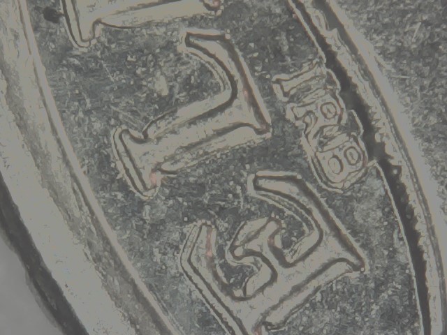 COIN SHOWS WHAT I BELIEVE TO BE DOUBLING ON OBVERSE. REVERSE SHOWS NO ERRORS. SEE PICTS. THIS IS A BEAUTIFUL COIN THAT LOOKS AS IF IT COULD BE SILVER.