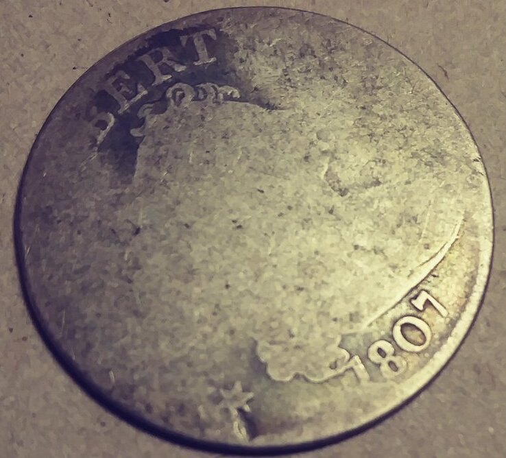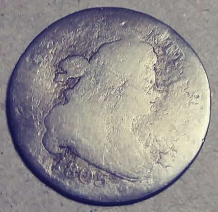 1807 half dollar, PCGS G04. I’m thinking of upgrading to a VG08 or VG10 example for my type set: 1805 quarter, PCGS AG03: