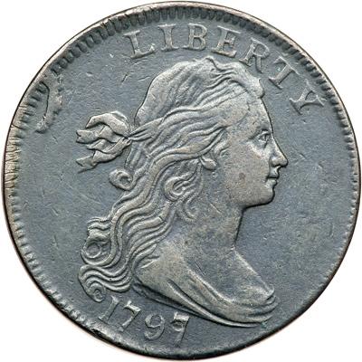There is a tendency among Early date collectors to emphasize obverses and then mention reverses; I would like to take the opposite approach. Each Stemless reverse is matched with two or three obverse so they account for many more varieties than the four and a half reverses. I call the 1801 half because it is only missing one stem, so is it really stemless? Stemless Reverse 1 Sheldon Reverse 1796 BB and 1797 Reverse T: This is Die State I of 1796 NC-7. The obverse does not have the obverse crack the other NC-7 has though the reverse is insufficiently strong enough to see if the die clashes of later die states are there. I can't even see die clashes that on that coin either. This is a Die State II of 1796 NC-7. This coin was listed as NC-6 by Sheldon in EAC in 1948, but de-listed in Penny Whimsey in 1958. When a second example of the die showed up overstruck on a cut down planchet used for a half cent, the die was confirmed. The Die State I showed up when purchased unattributed by Rod Burress and was sold to Dan Holmes. It is the only one of the three available as a Cent with the discovery coin in ANS and the other now being a Half Cent. The next appearance of this Stemless Reverse die appears on a single pairing in 1807 with Obverse 9 and is the 1797 NC-8. This is the 1797 NC-8. It is unique. The last obverse pairing for this die is the S-143 which was R5+ in 2000, but seems more likely to be R5 or R5- now. This is the 1797 NC-143.