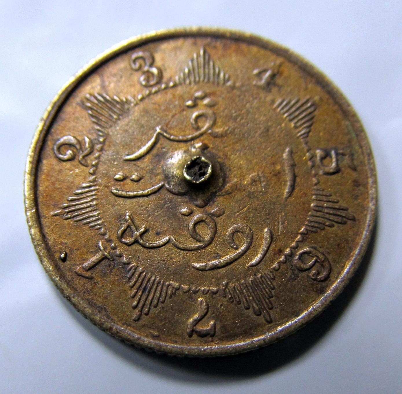 From what I can gather this coin is a "contemporary imitation" - that is per this auction record which is the only info I can find about this coin. About 20mm & 2.3g. Does anyone know anything about this series? Any ideas what the dimple at the center of the reverse is? THE TON EIJKELENKAMP COLLECTION OF, COINS OF THE NETHERLANDS EAST INDIES, DUTCH EAST INDIES GOVERNMENT - 1816-1949, Wilhelmina (1890- 1948), 1/4-Gulden, contemporary local imitations in base metals (6), 1908 copper, obv NTAI JHDE E 1908, rev 1.2.3.4.5.6.7, edge milled ( Scho 809, Oeang 1505), 1908, as before but silver plated (Scho 809, Oeang 1505), 1909 pewter (Scho 810, Oeang 1506), 1911 brass, obv NIDNEI INDIE 1/4 G (Scho 812), 1912 pewter (Scho 813), 1920 pewter ( Scho 819, cf Oeang 1511). Very fine. (6) E70-90