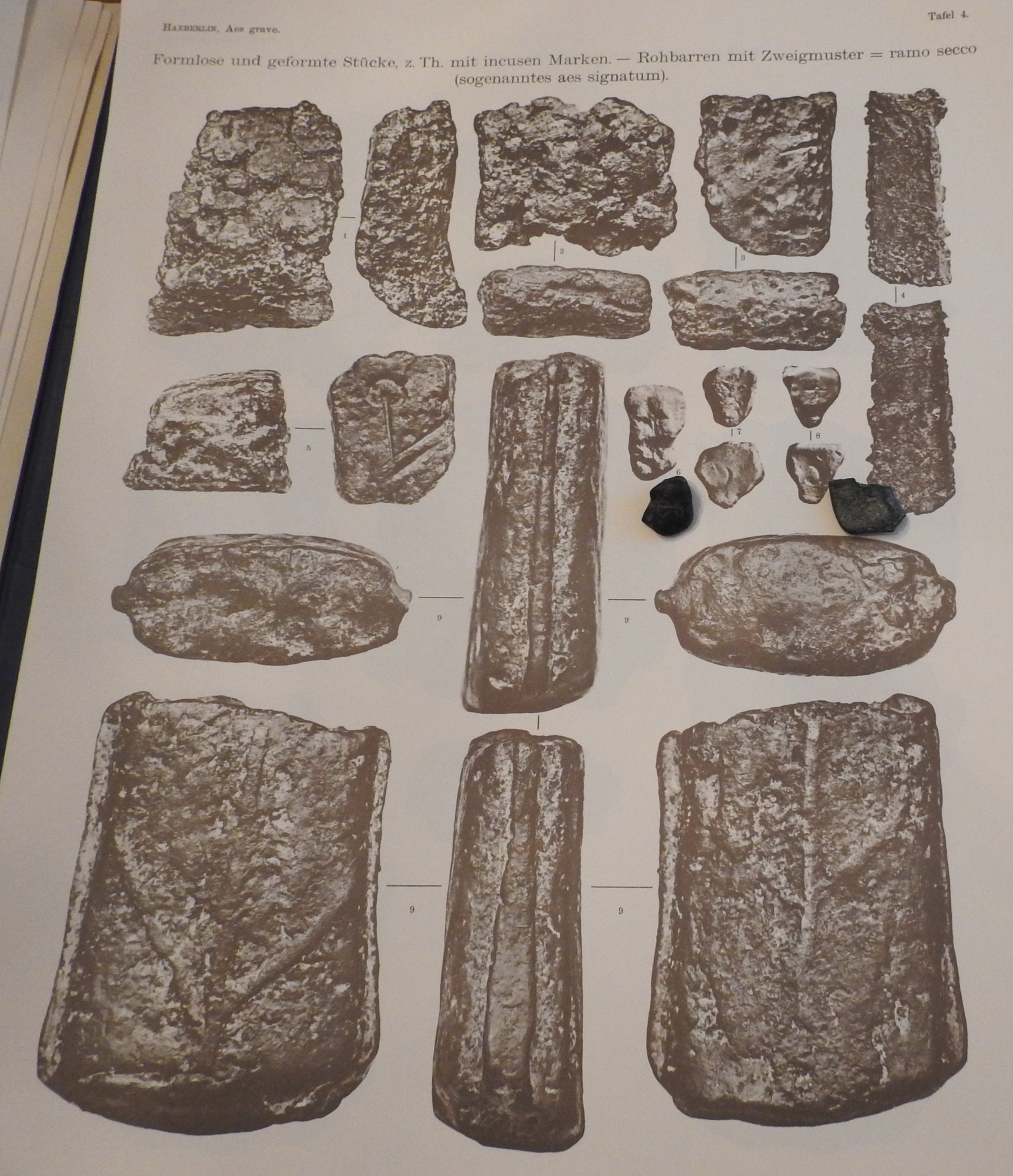 This is a pic of one of many pages af cast asses and the start of the table on the coins. I like this page 'cause I have 4 of them: arrow head / jar; dog / lyre; fly / trident & club / two dots. Maybe you can tell I am excited to get the book.