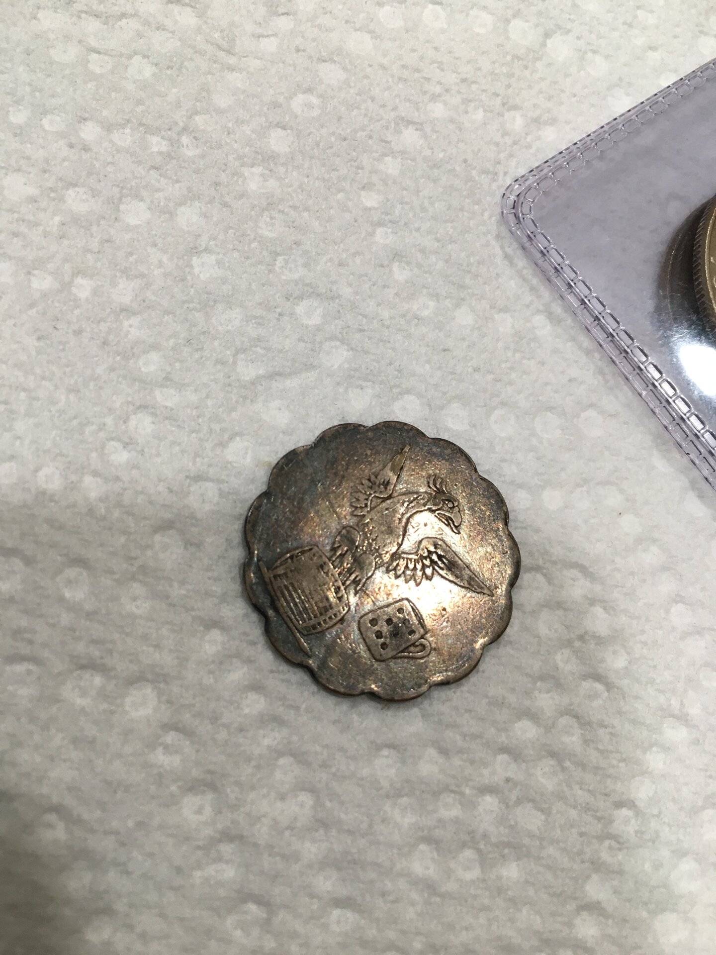 The eight pegs on the cup represent marks on a universal drinking flagon. Each person would share from the cup, however they were not to drink past their peg, or mark on the cup. In this way alcohol could be bought and shared. If they did drink part their mark, then they would usually be hit, or punished with a fight. Hence the phrase: to knock someone down a peg.