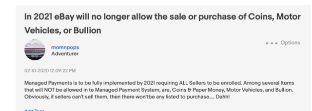 I know that those that signed up for managed payments have had their running coin listings pulled and have regretted it. After signing up, they can’t list coins. I started selling in 2006 and only have $250K in coin sales but if they don’t make changes they are of no use to me.