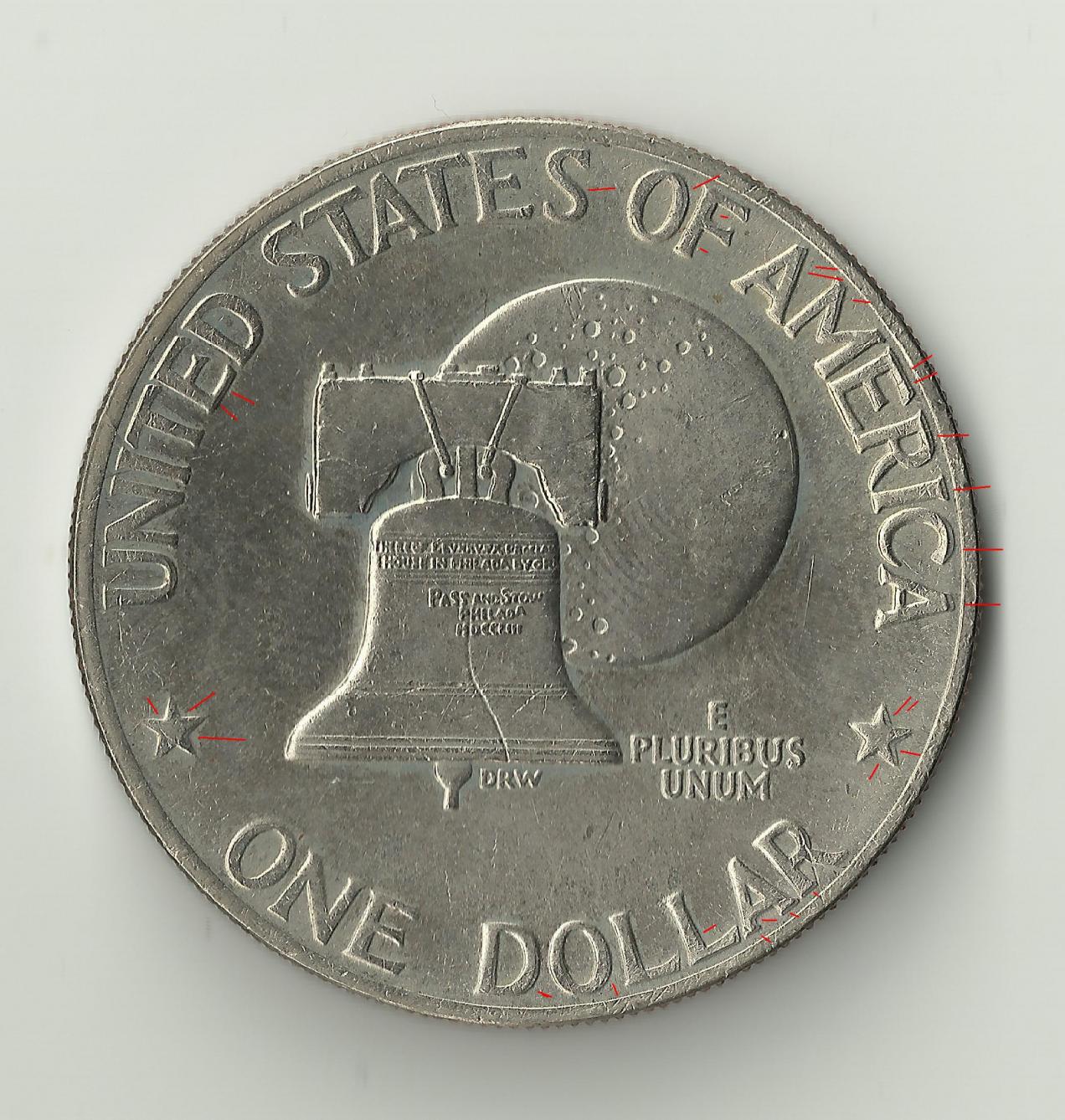 1776back.jpg 1776 front.jpg thie eisenhower bicentennial dollar i noctied that on reverse side the right star has one on top of another and the left star is the same and as seen the letters on reverse side are not right in someone else opinion what would this be aslight error or what? i collect for my personal collection and sell but i'm no way close to being a pro send your opinions all is welcome