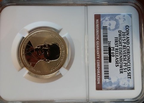 Got my Finalized results online from NGC for the set I submitted last week. 2015 $1 Eisenhower RP - First Release PF69 2015 Eisenhower Silver Medal - First Release MS68 Yes. 68 out the box. I still consider myself lucky that I had one set without milk spotting on the medal. With all the production problems on the medal, I consider myself lucky. Anyone hit a 70 so far? I will put up pictures when I receive them back in the mail!