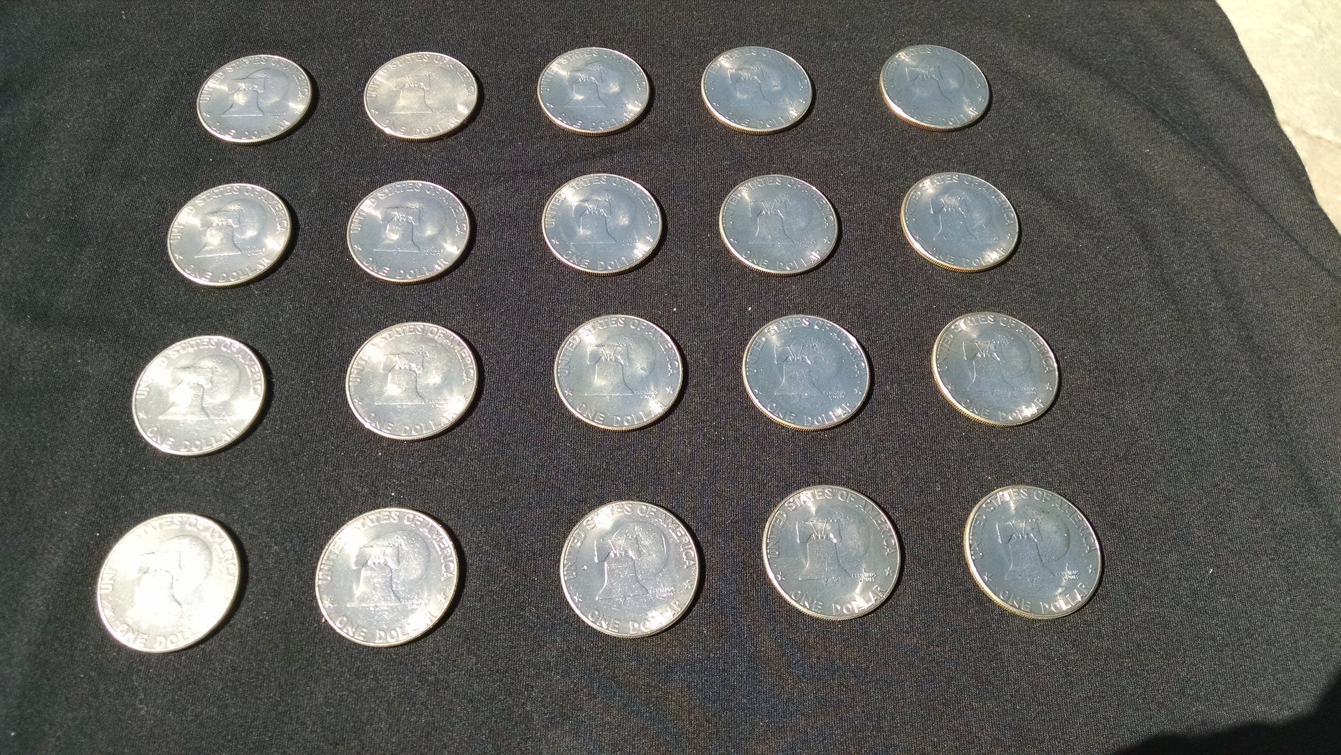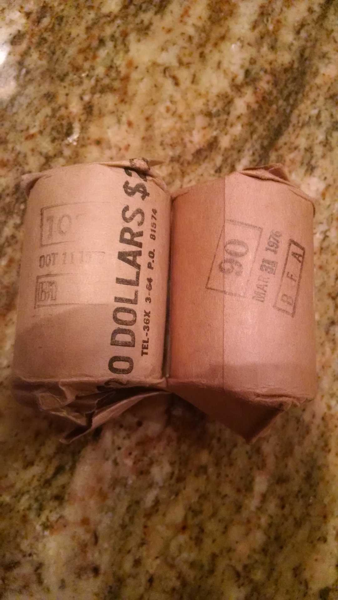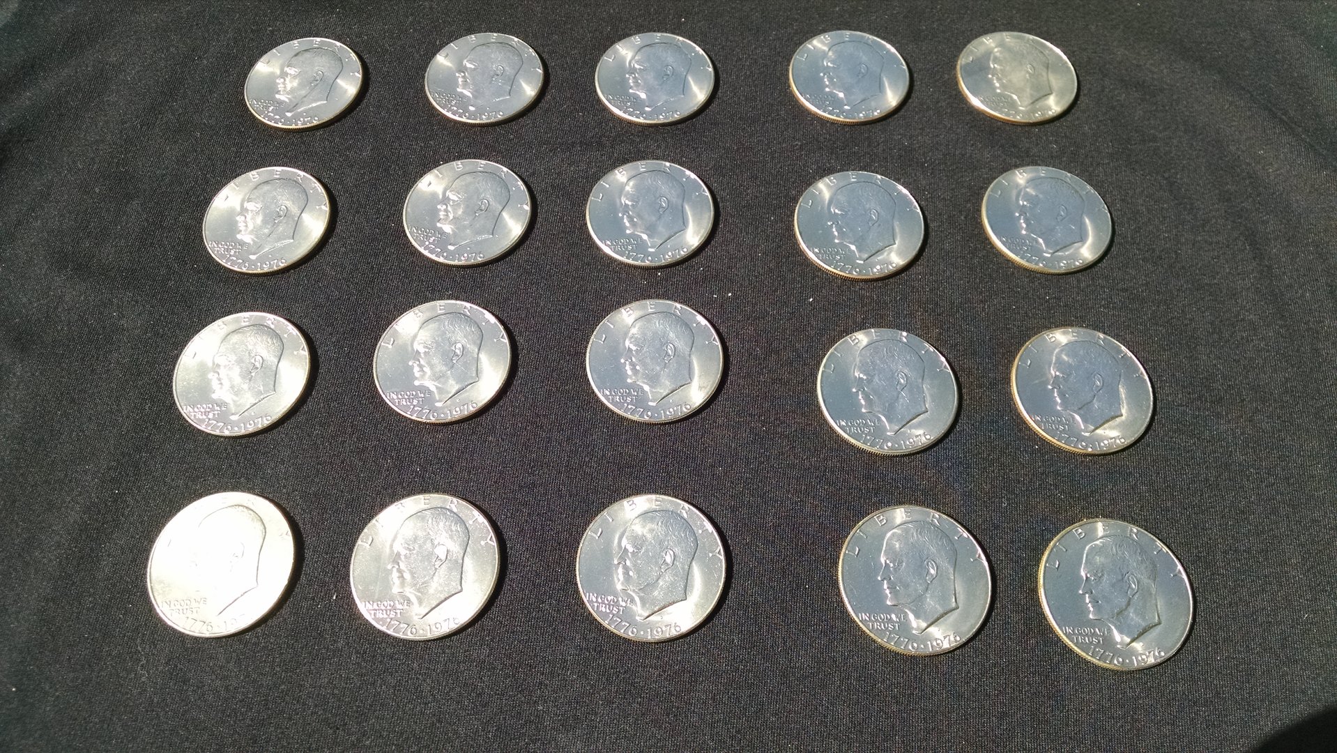 The Vault Manager at one of my usual banks set aside ten rolls of Ikes for me that an older gentleman cashed in about a week ago. These were all very old looking rolls and I was intrigued by the fact that some had very old dates stamped on them: After checking the contents I found that someone had sorted these coins by date in different rolls, and almost all of them are UNCIRCULATED!! Probably they've been sitting in these rolls for about 40+ years! One roll was entirely 1976-D Type One's: And in a roll of 1971-D's I found 6 of these which I believe are the Friendly Eagle Variety. Any Ike experts please feel free to confirm or correct me on this: