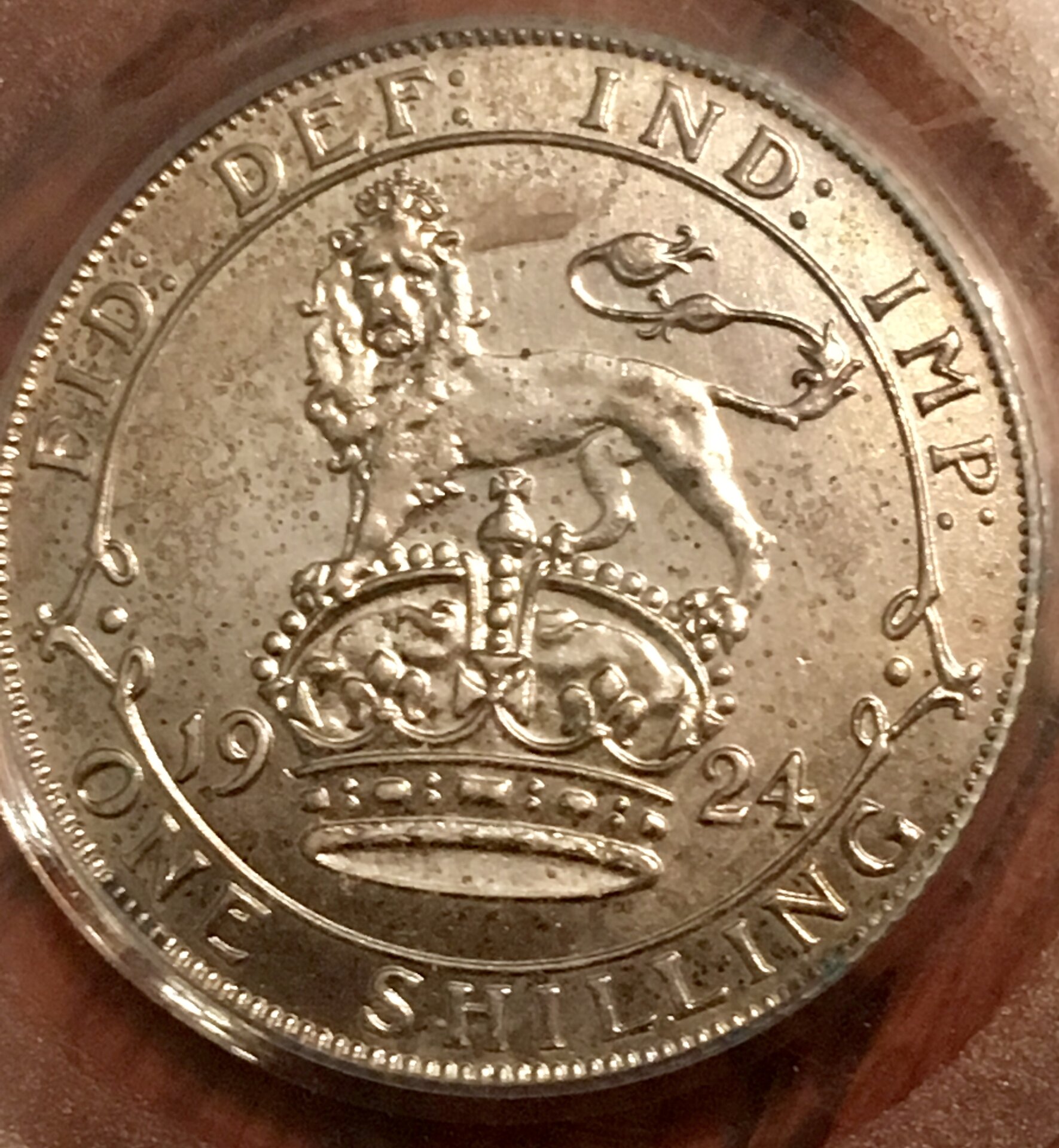 Hiya, this is a very scarce pattern issue by the Royal Mint in nickel as part of a possible attempt to debase further the 0.500 standard issue shilling (there were also such shillings struck in 1923 with at least the 1924 evidently struck in 5.0 gm and 5.7 gm trial weights).