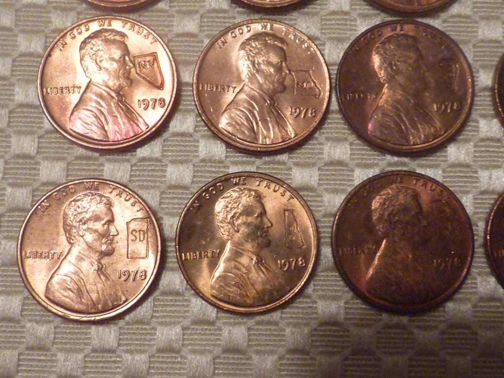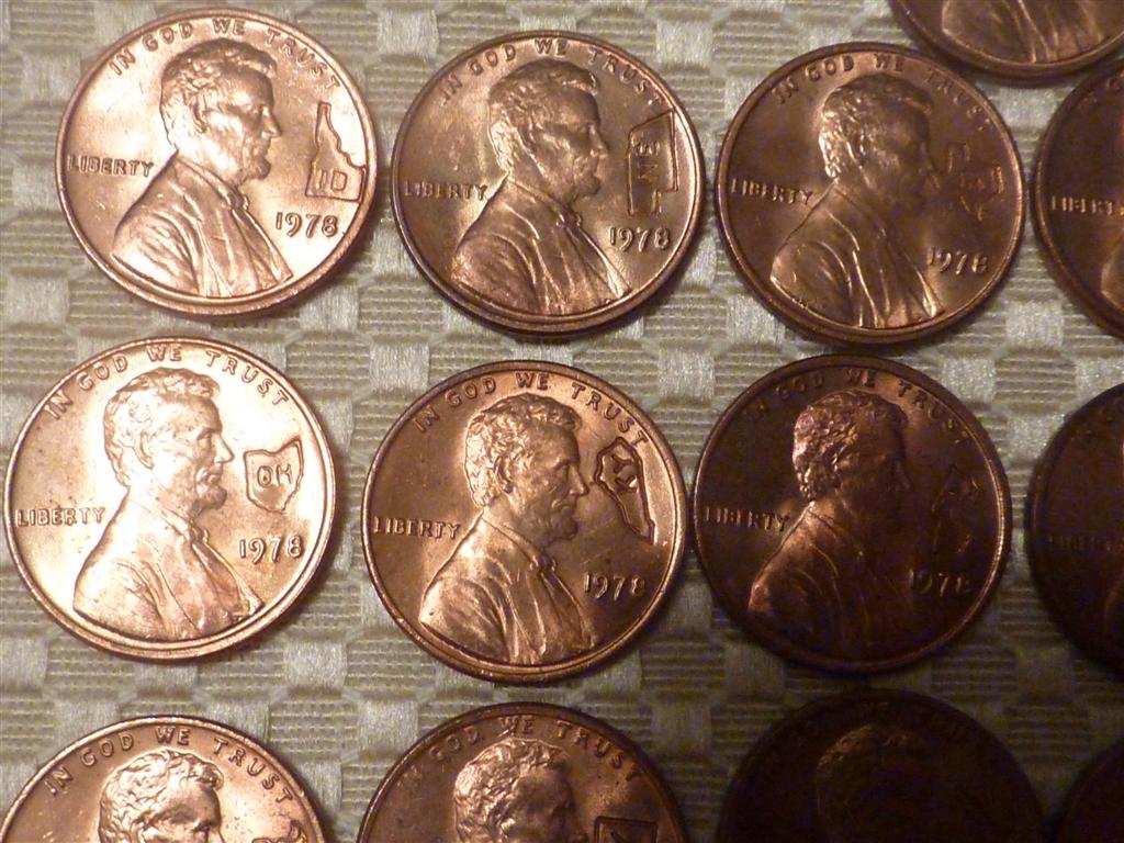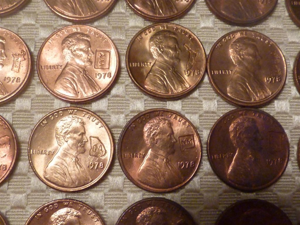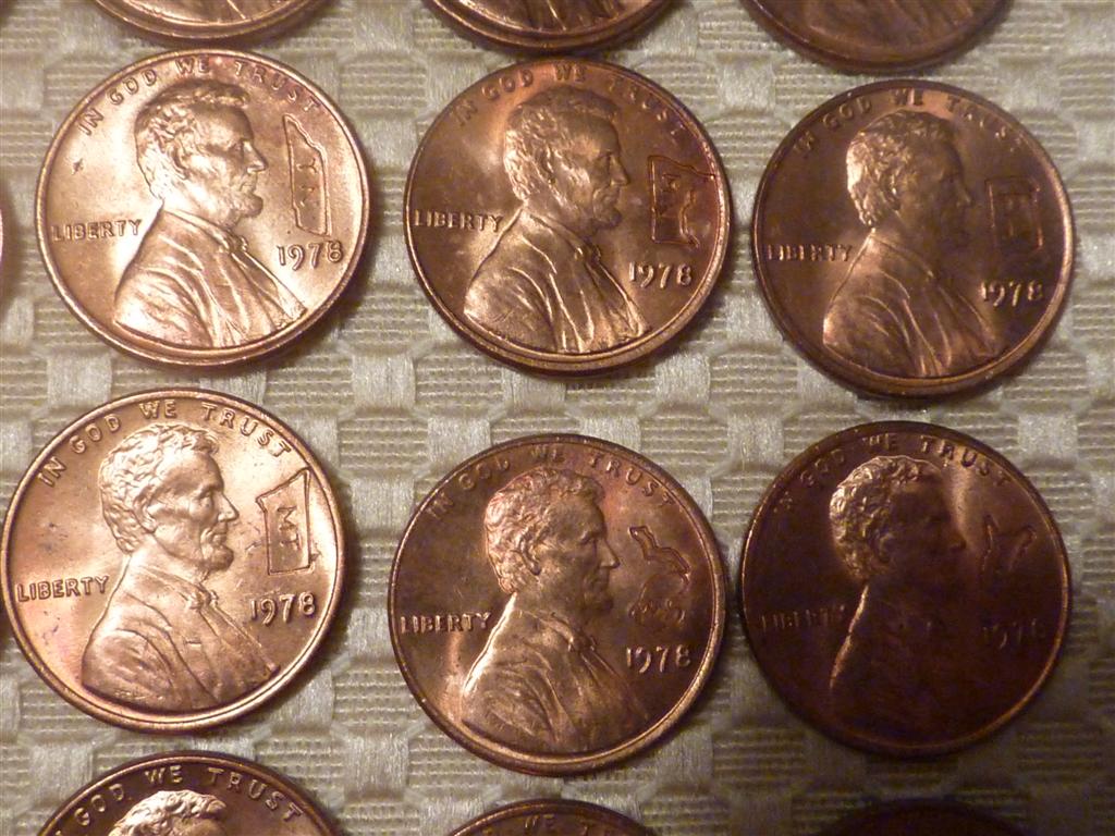 Got 20 rolls of cents today, 5 paper rolled. Opened one and found the whole roll was 1978 and counter stamped with all 50 states !! I think they are all uncirculated ! Thought this was a pretty neat find.