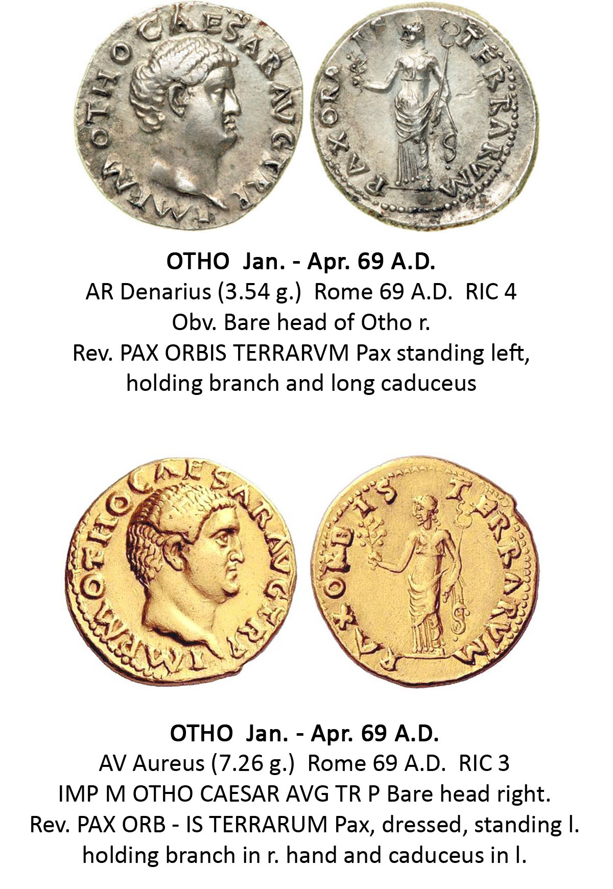 Nice coins IoM. I have an Otho I got from Forum a couple of years ago, but no where near as nice: OTHO AR Denarius OBVERSE: IMP M OTHO CAESAR AVG TR P, bare head right REVERSE: VICTORIA OTHONIS, Victory standing left on globe, wreath extended in right, palm frond in left Struck at Rome, Jan-Feb 69 A.D 3.179g, 18.7mm RIC I 17, BMCRE I 25, SRCV I 2165 var (exergual line instead of globe)