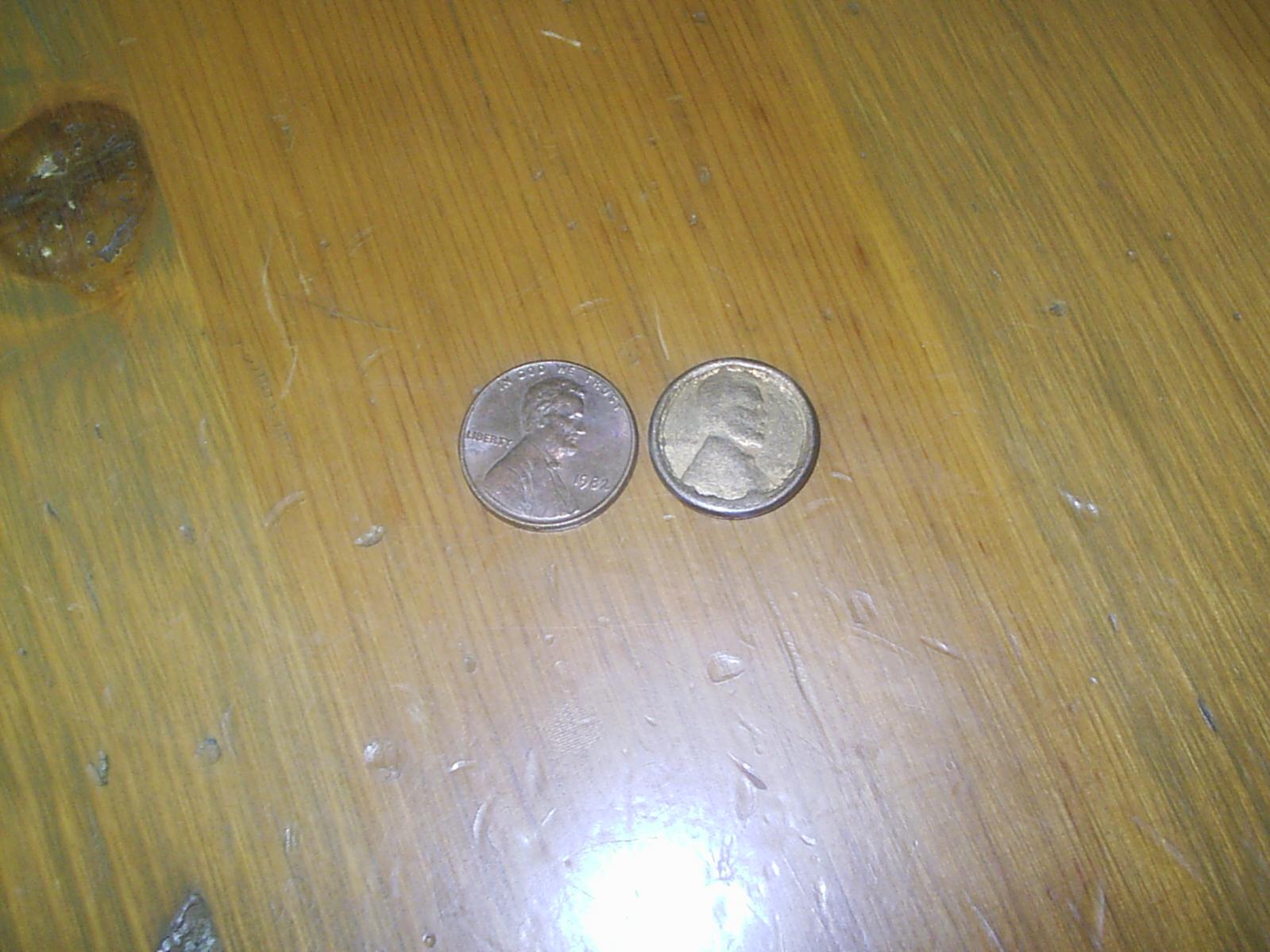 error 001.jpg error 004.jpg the one on the right is the size of dime-no wheat on back, it looks like to much copper in to little space, even the front is covered with to much copper- has anyone seen this before? thank you!!!