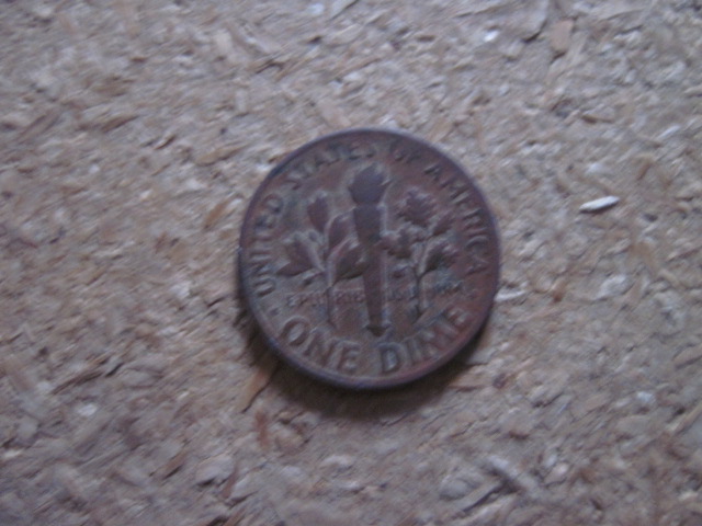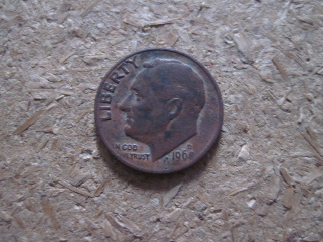 I have found numerous clad coins that look just like your dime with my metal detector. Clad coins that spend enough time either buried in the soil or on top of the soil tarnish a dark color like yours.