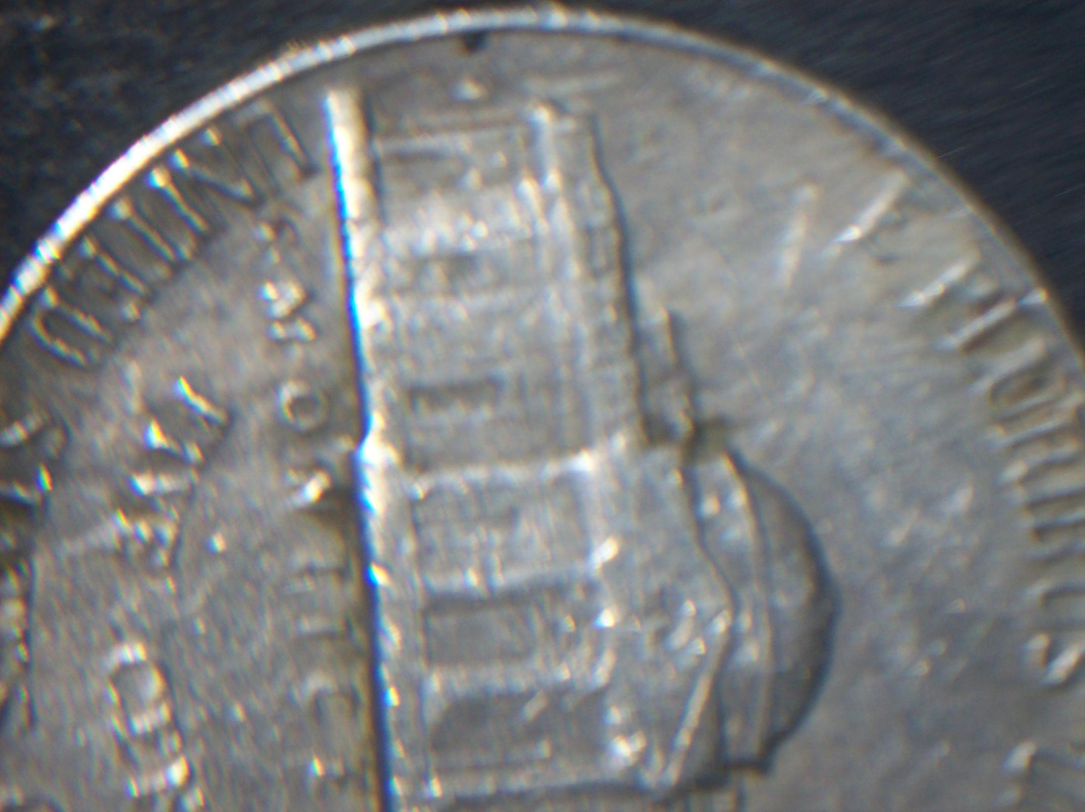 I see an indention running through the V in FIVE, but I can't really see much more than that. Where do you see the top of the monument in hand? Try re-uploading the pics after you've put some arrows where you see what you're seeing, give us something a bit more to work with.