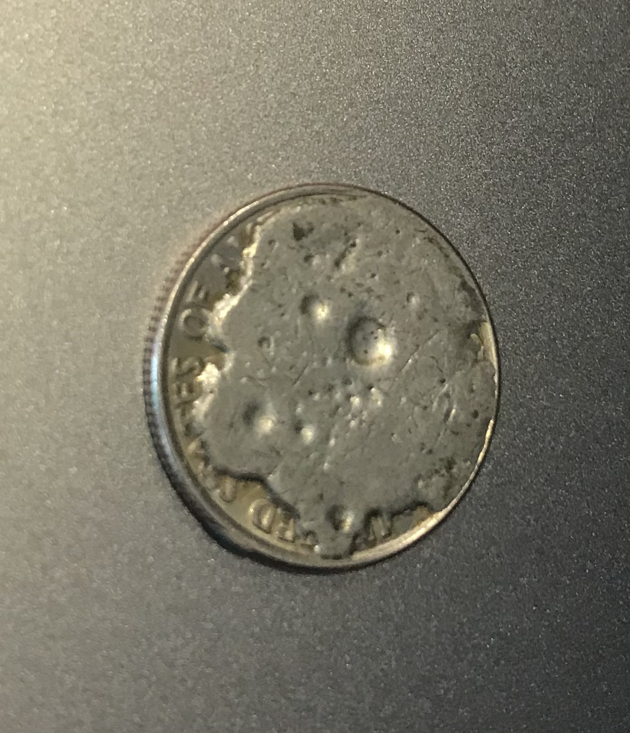 Not sure if this is an error or damage after the mint. My son found this in his pile of change, I just wanted to reach out to the forum before going to assess with a coin expert. It’s less embarrassing and less of a waste of time if this is simply damage on a coin, if I find out here rather than going all the way to an expert to show it to. At first I was thinking it was a cud error, but I feel it’s too big. And if a cud error is basically a void in a die from a piece breaking off, I wonder how that would be the case with this... it’s a Roosevelt dime from 2000, wondering if this is a known issue, or simply messed up? Please be kind, it’s my first post the “blemish” doesn’t appear to be added on, it’s completely bonded to the coin. At first I thought it might’ve been some weird slag melted on, but to me it really just looks like it’s one with the coin... I suppose I could weigh it to see if it’s consistent with other dimes? Don’t know if that would be helpful? I can measure on a pretty minute scale if that sounds helpful?
