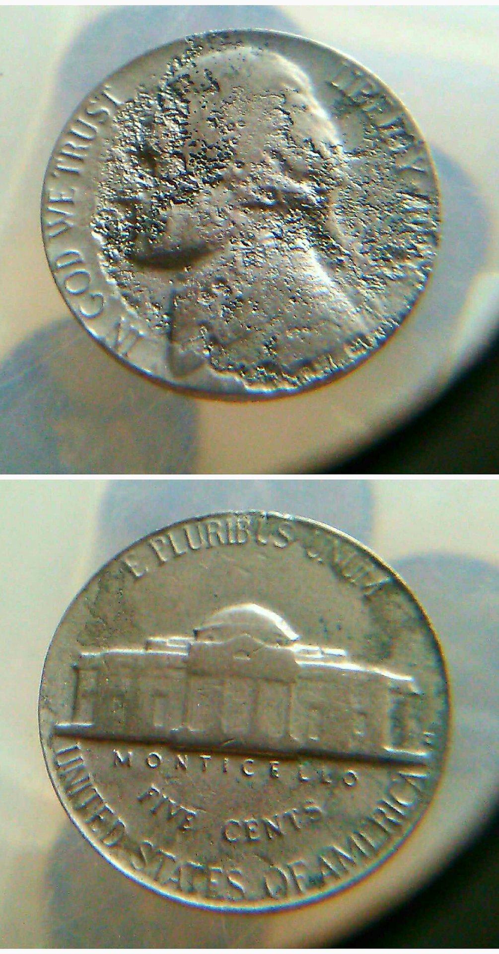 1917 - Minor Laminations 1957 - Damaged. It was once encased probably in a Lucky Cent holder 1960 - Damaged Nickel - Damaged