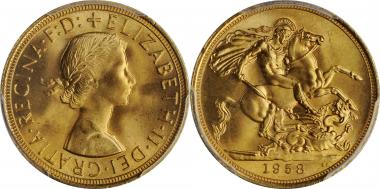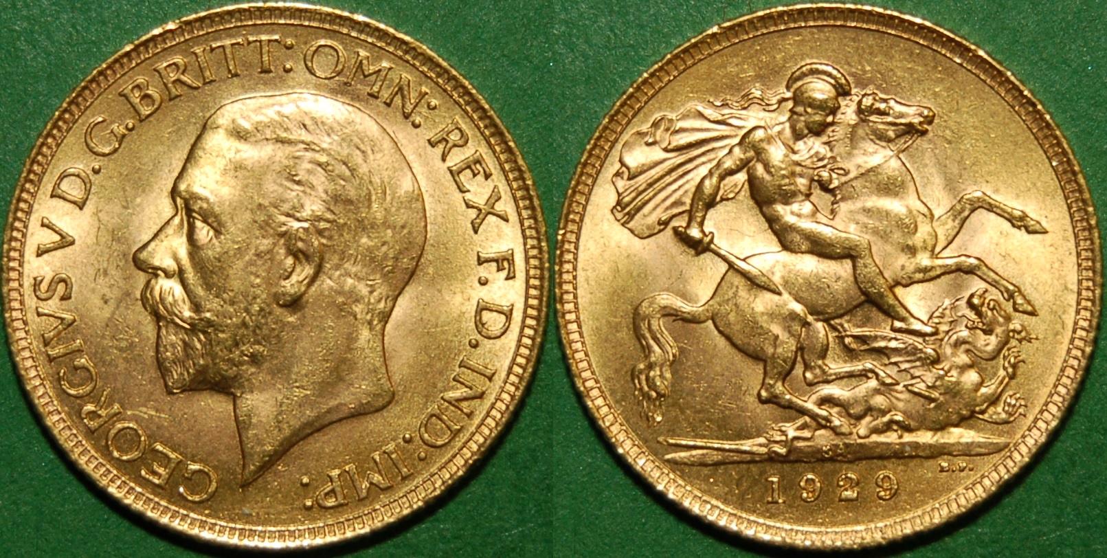 I have to confess I find gold a little boring. It doesn't tend to tone dramatically and the greater care taken over higher denominations means there are fewer varieties to consider. For all that I do have a few - this is a 1929SA sovereign struck at the Pretoria mint.
