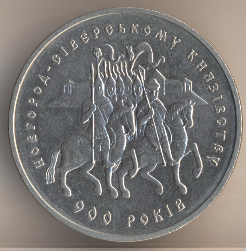 5 hryven 1999, copper-nickel-zinc. Size - 35 mm, weight - 16,34 g., mintage - 50000. "900th Anniversary - Novgorad-Siversky Principality".