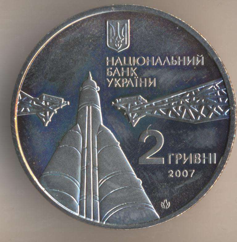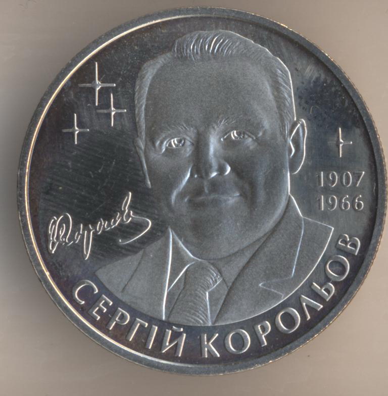 2 hryvni 2007, copper-nickel-zink. Size - 31 mm, weight - 12,8 g., mintage - 35000. "Serhii Koroljov".