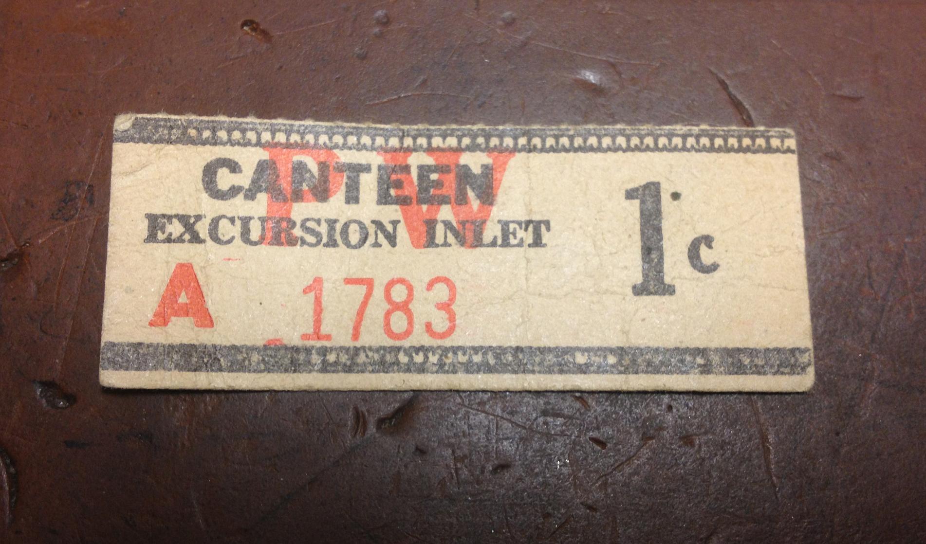 I picked this up today. It's 50mm wide. There was a US POW camp in Excursion Inlet Alaska during and just after WWII. This was script issued by the camp for the prisoners to use in the canteen.