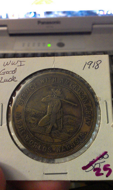 I'm not sure if this is the right forum, but I haven't seen an exonumia category on the site (if there is one). I just picked up a medal that isn't described in the H&K catalog. It is identical to HK892, except that it's dated 1918 instead of 1917. Here's a link to the known/acknowledged pattern (called a type I, to differentiate it from a very different good luck wartime medal): http://www.so-calleddollars.com/Events/World_War_I_Good_Luck_Medals.html HK892 is described as an R-4 rarity, but far fewer than that are known in any numismatic holdings (30-40 have been tracked vs 500-1,500 estimated in existence). There's quite a discrepancy in those numbers: a few are probably held in militaria collections, but my impression is that R-4 may understate the surviving number. There may be more of these "good luck" pieces buried with their recipients in France than held in any type of collection. I can't think of anything that would preclude the 1918 version from qualifying for the SCD series, and I don't know if it's been identified before. There's also a note on an attempted census that indicates that I'm not the first to spot this date variety: http://www.socalleddollar.com/notes.html#HK892 "HK892: Found dated either 1917 or 1918. The 1st edition of HK describes this piece as being dated 1917, but shows a picture of the 1918 piece. The 2nd edition shows the 1917 piece. My tally numbers probably(?) include only 1917 pieces. 1918 pieces appear to be more rare."