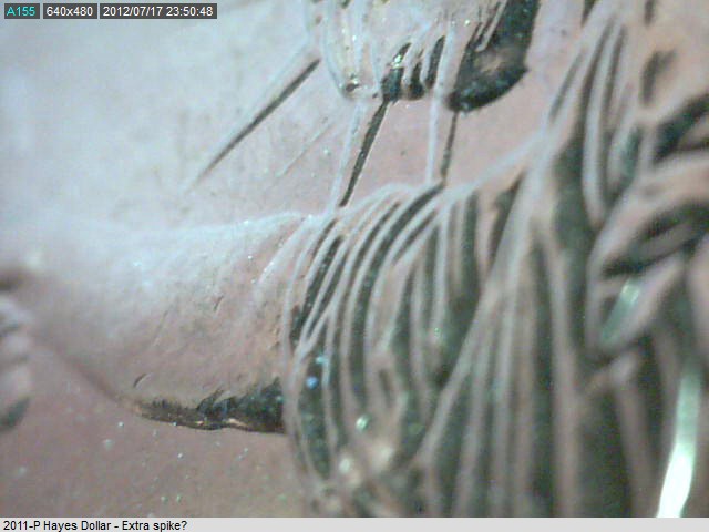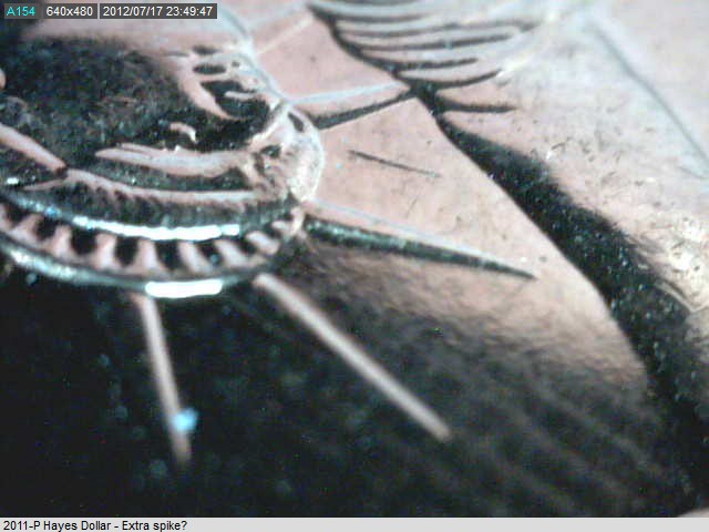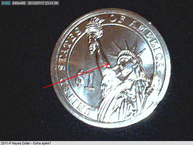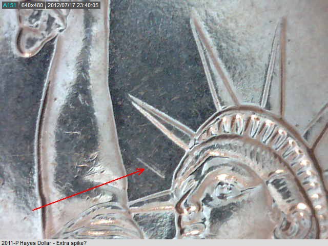 Hey all, Check this out: It looks like it is raised to me... and it looks like a spike. Opinions, thoughts? This is from a mint roll I just opened 10 minutes ago. As always, thanks for entertaining my posts!