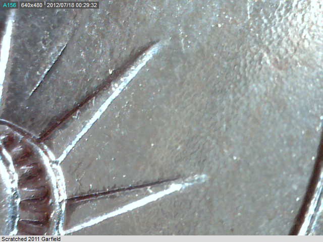 I was afraid of that myself, but I'm pretty confident it is raised. I actually found a scratched 2011-P Garfield for comparison (Different coin for comparison) I also found a 2nd coin from the Hayes roll that matches :smile I'm not fully convinced this is legit, but I'm hopeful!
