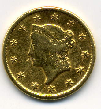 I ran across this fake Type 1 Gold Dollar being sold as genuine on eBay. The BIN price is $220, a significant numismatic premium over the gold content (assuming the coin is 90% gold). Note the misshapened stars, mushy details, mushy denticles, and the spike emanating from Liberty's lip.