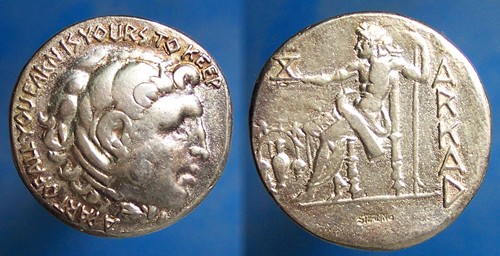 This may explain the X on the reverse: Arkad tells the king that there are seven cures to a lean purse. The first is also the most important: “Start thy purse to fattening.” How is this done? Arkad explains: “For every ten coins that you place within your purse, take out only for use but nine. Then after that your purse will start to fatten at once and its increasing weight will feel good in your hands and bring satisfaction to the soul.”