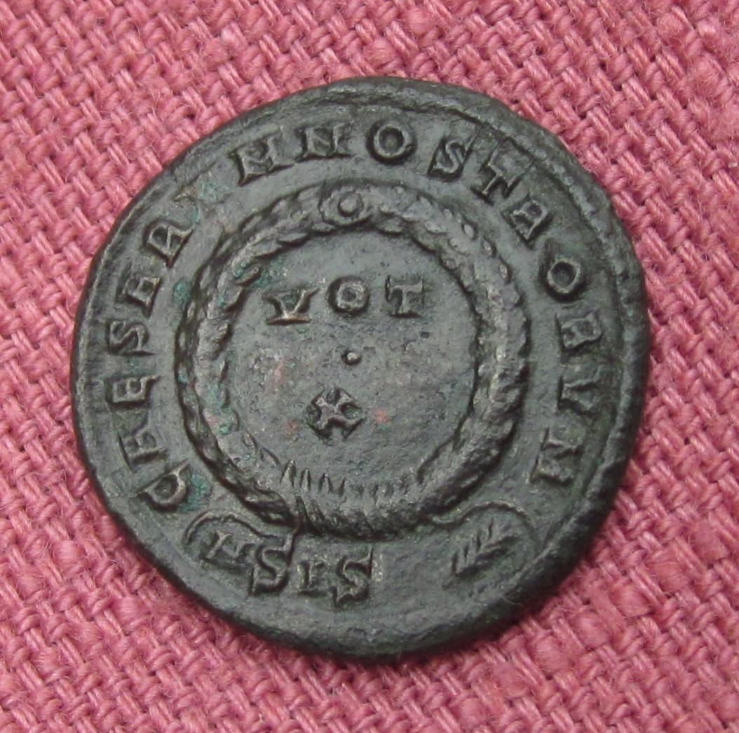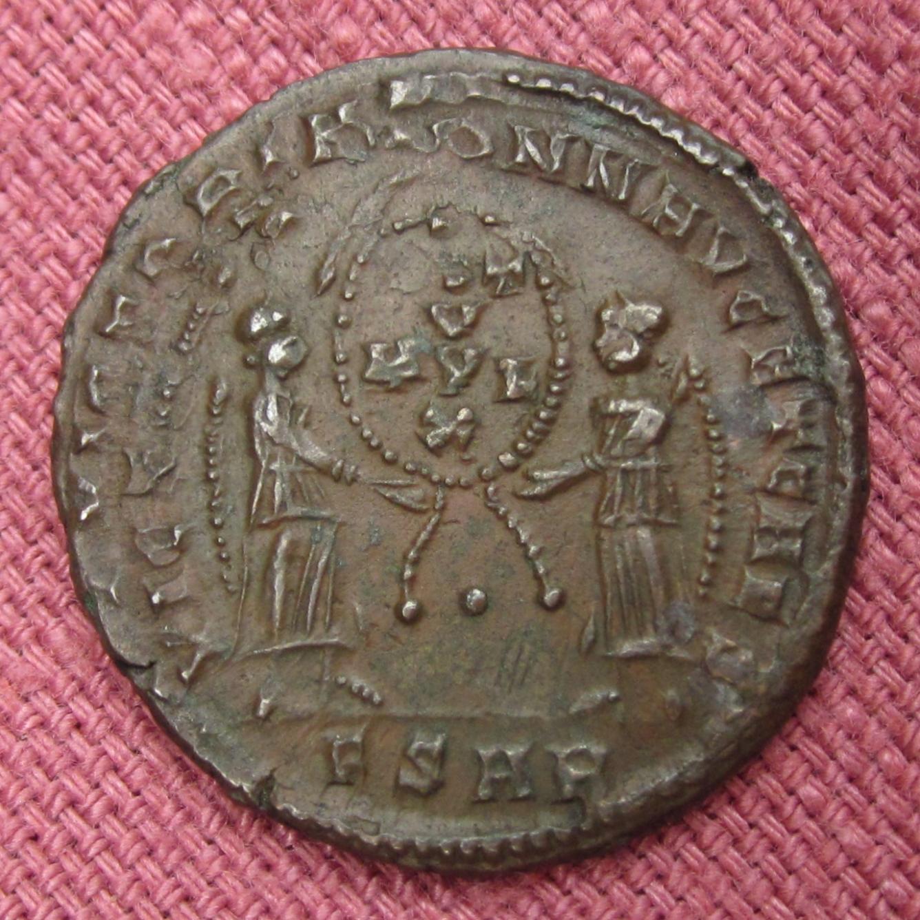 Father's Day present The wife gave me a small check payable to cash & I went to the coin show on Father's Day. I traded the check for these two Bronze Roman coins. These two Roman coins are relatively high grade (EF) and IMO they are easy on the eyes. This is how I have them attributed so far: DECENTIUS Caesar 351-363 AD AE1 (24 mm diameter) Similar to Sear #4036 Obv: DN DECENTIVS FORT CAES Bare headed simple draped bust facing right. Rev: VICT DD NN HVG ET CAES Two victories standing facing each other holding between them a shield (VOT - V - MVL - X) in the shield, FSAR in exergue. CRISPUS Caesar 317-326 AD (Son of Constantine) AE3 (19 mm diameter) Similar to Sear #3918 Obv: IVL CRISPVS NOB C Laureate head facing right Rev: CAESARVM NOSTRORVM Laurel wreath around (VOT - X), HSIS in exergue. Several of these letters are illegible on my examples but the Sear book allowed me to fill in the blanks.