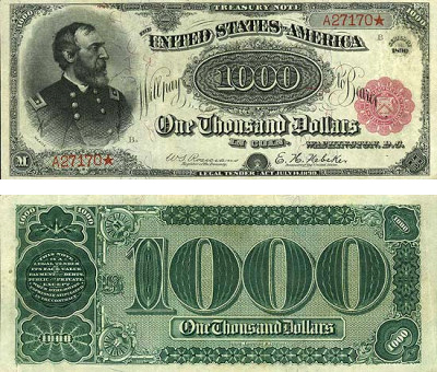 1890 $1,000 “Grand Watermelon” Red Seal United States bank note (Fr.379b) "A world’s record price of $2,255,000 was paid for this note..." read on at Coin Link.com