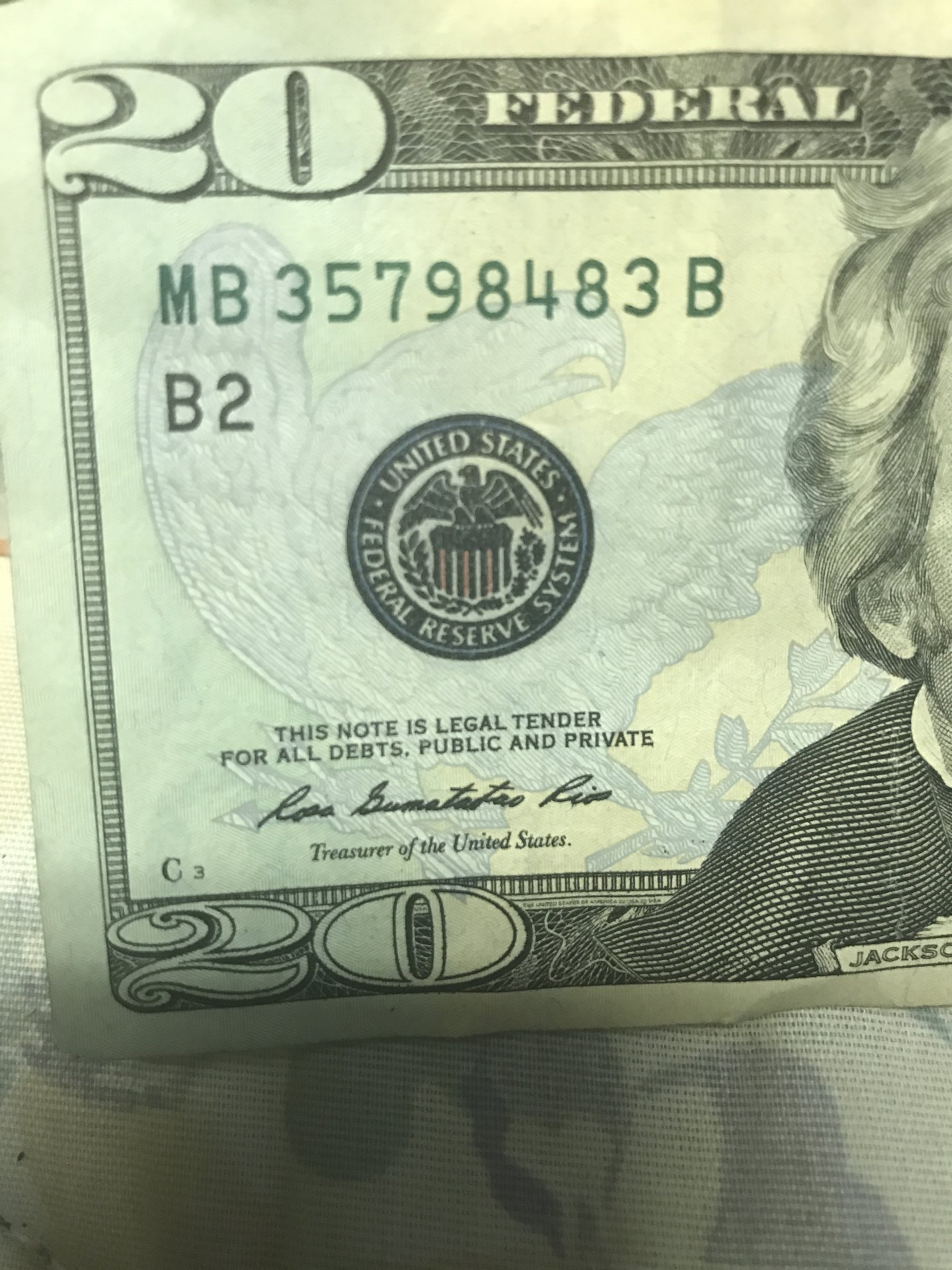 I have this 20 dollar bill from 2013. On the federal reserve system seal, within the eagle, has red lines instead on green. Plus it has a blue ring around the seal. I am just curious as to what this may mean.