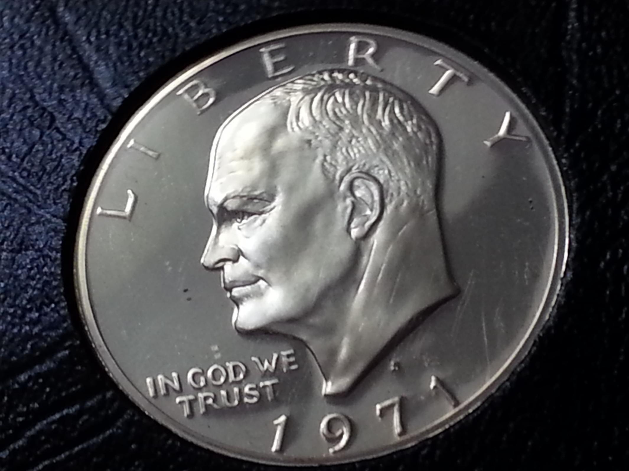 Hi guys, My dad is putting together an Ike dollar set, when he asked me my opinion on this 71-S Ike. At first glance I quickly said Proof and went about my business confident in my assesment. But then I looked at his Whitman Classic Ike Dollar Folder and saw that the coin he asked me about was a double and not part of the set, so I looked through the folder and quickly retracted by Proof assesment and changed my verdict, asserting it as being a UNC (business strike). The reason: when I first saw the coin it definetly had a mirrored looking field (cloudy and not very reflective). But upon looking at his folder and the other examples of a 71-S Ike Proof and a 71-S Ike BU, I was left scratching my head. The BU 71-S in the folder was very mirrored and the Proof was reflective enough for a good shave. My knowledge of the Ike series is, well, lets just say lacking, so I throw this one to you, you Ike lovers. MUCH THANKS (from me and the parental unit)! The first 2 pics are the coin in ?. Here are the BU and Proof coins already in the folder