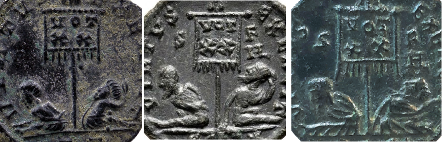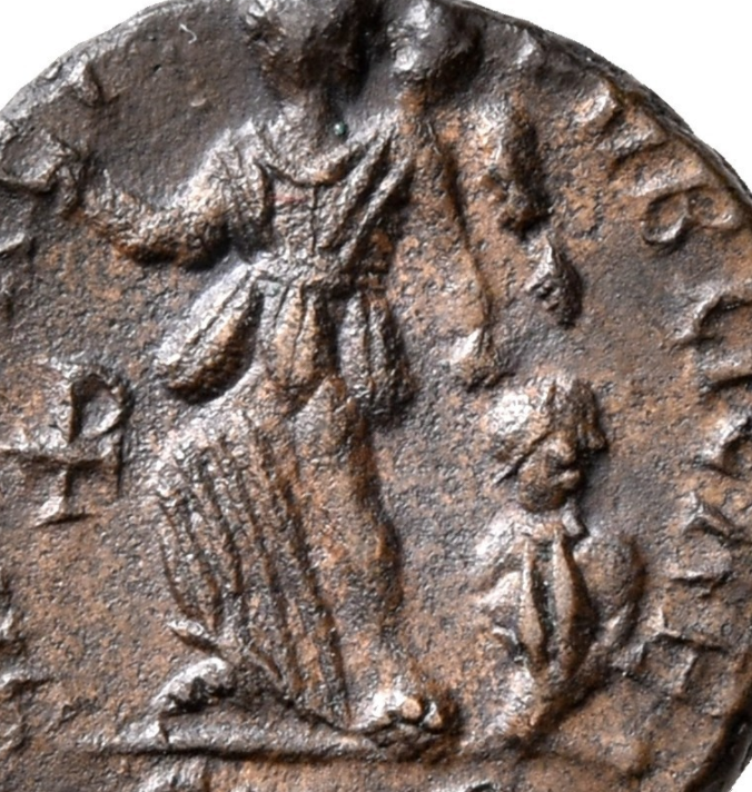Oh, I'll definitely get in contact for comments when my draft is ready! Great questions and information! I always wondered if those "V" shapes on the Licnius (& some Constantine) captives could be bindings from the waist to the shoulders/possibly neck, as in my little Theodosius AE4. I think the best way to figure them out is to compare to larger artworks, like bronze figurines, marble sculptures, and various pottery/ceramics: (Creative Commons fair use, from Wikipedia, (Roman) Bronze Statuette of a Suebi Captive) (Not mine, photo credit: Harlan J Berk -- even oil lamps were decorated with bound captives!) I love your Honorius example, both for the foot to the groin (just unnecessary cruelty for its own sake) -- and for the knee past the exergue line. Starting around Aurelian, I think, you start to see the emperor or deities like Sol "spurning" the captives. Sometimes it even looks like the exergue line goes over, say, an ankle, and Sol or emperor could be "spurning" them by pressing on the line (I forget the technical term, not quite a "pillory" but it could be one of those long poles that multiple prisoners are tied to). Thanks for sharing that table/list from RIC X too! I hadn't seen that yet. I'm saving all these comments in my captives notes. Great Constans from Alexandria! I feel quite sure I recognize it and had it on a Watchlist in the last year or two... I'm thinking, possibly Berk but probably the one from Martina Dieterle? If the latter, I think it may also have been illustrated in: Kellner, Wendelin. 2009. Die Münzstätte Alexandria in Ägypten. Von Kleopatra bis Arcadius. Moneytrend Verlag Wien, 2009.